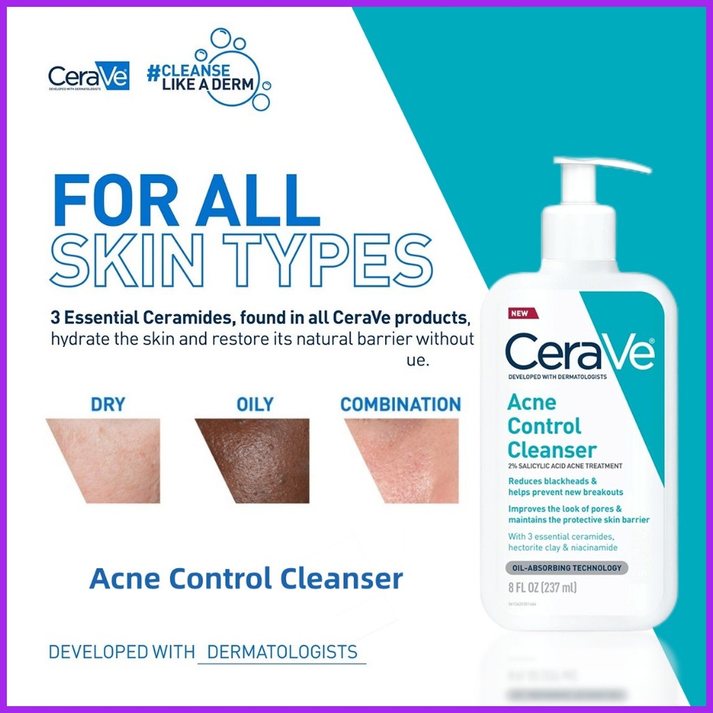 ◰ ◨ CeraVe Acne Control Cleanser Reduces blackheads suitable for oily skin Contains 2% salicylic ac