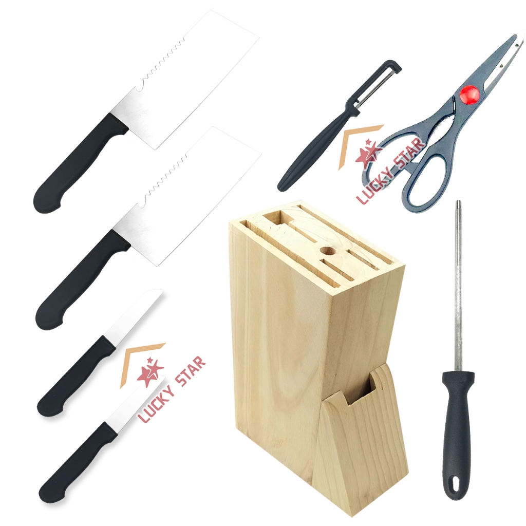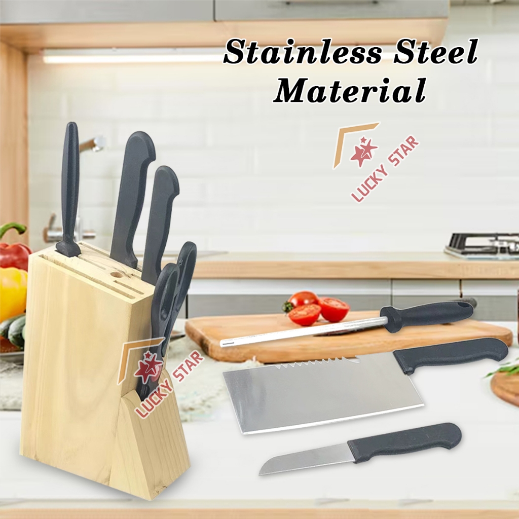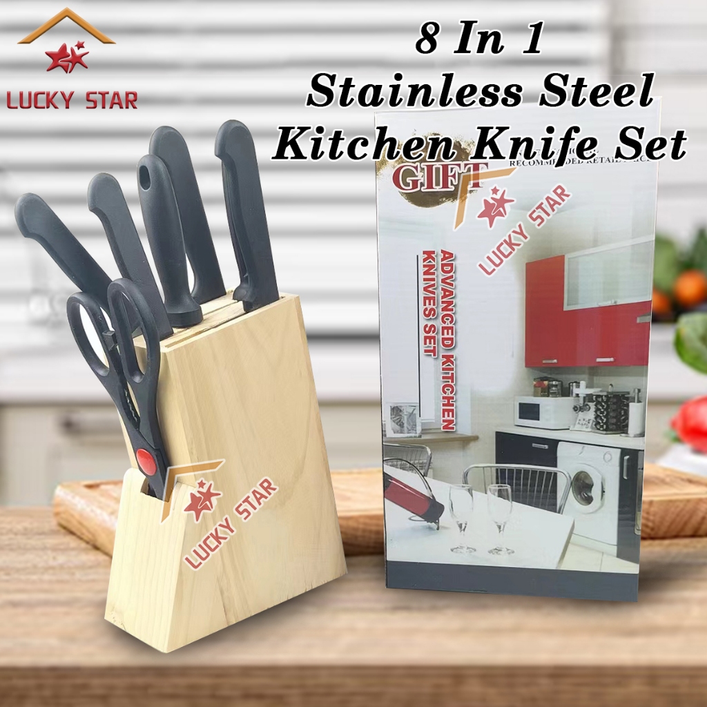 8in1 Set Kitchen Knife Stainless Steel With Wooden Stand Multi-function Scissors Kitchen Knife Sets