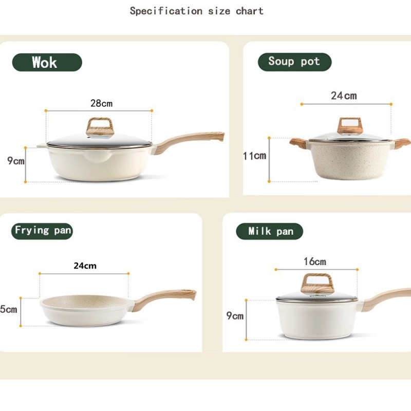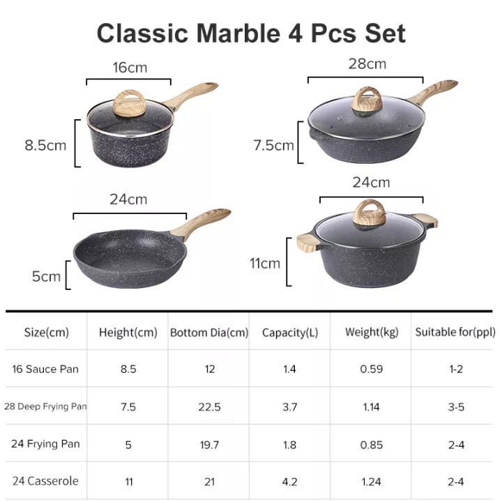 JF 4 Piece Caroter Non Stick Cookware Set with Multi-Layer Marble Coating