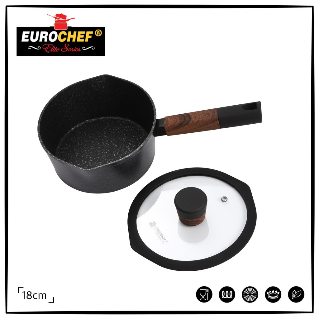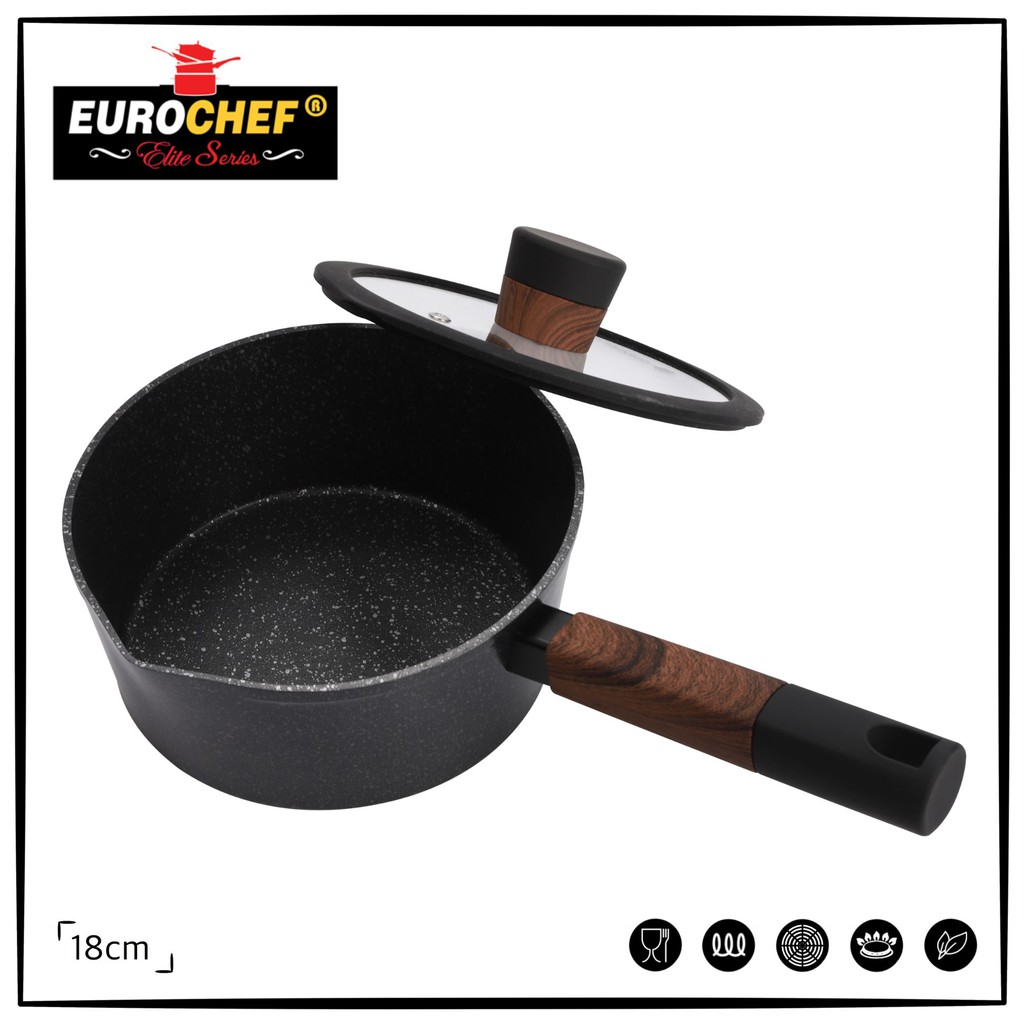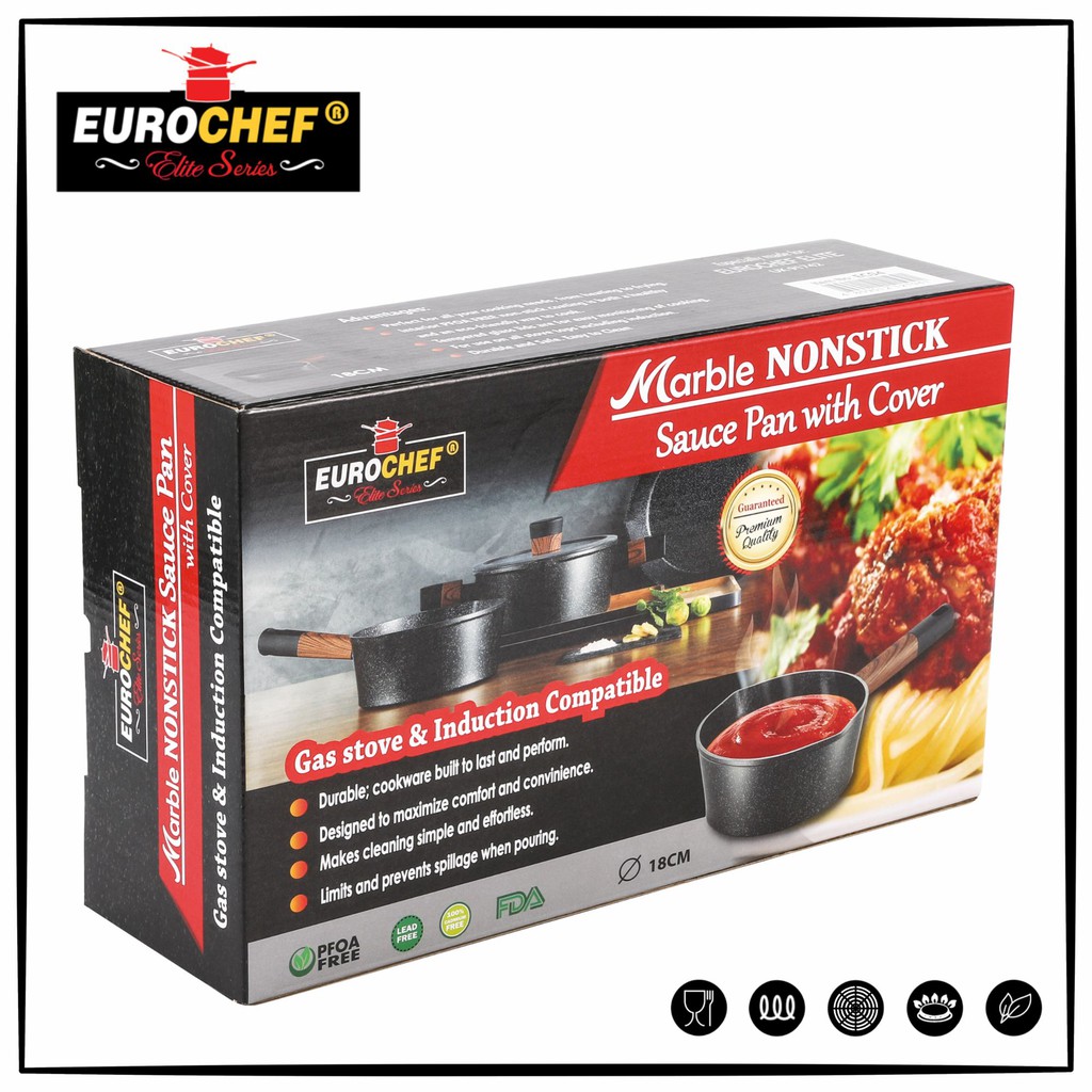 Eurochef 18cm Non-Stick Marble Sauce Pan Glass Lid Handle Aluminum Cookware Cooking Spout Pan EC04