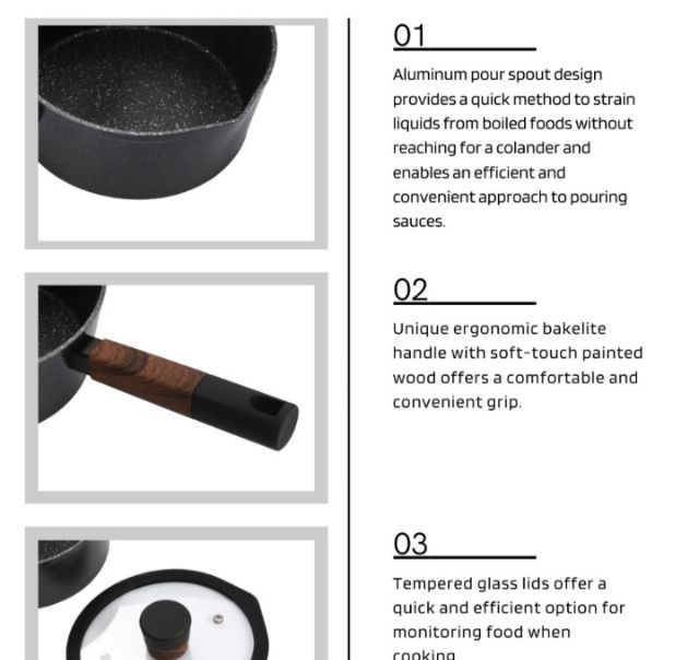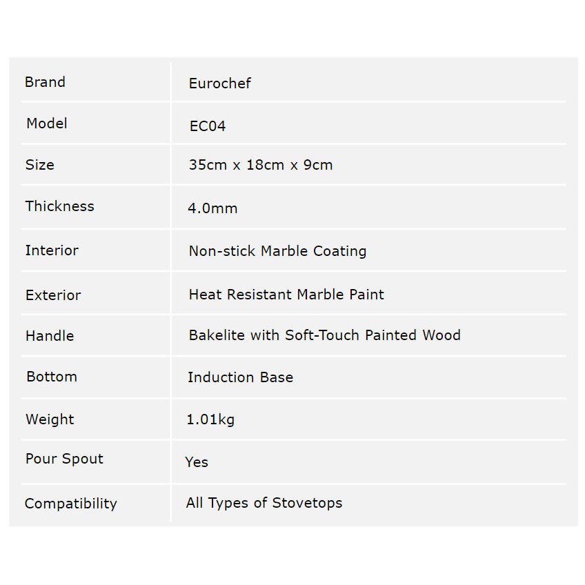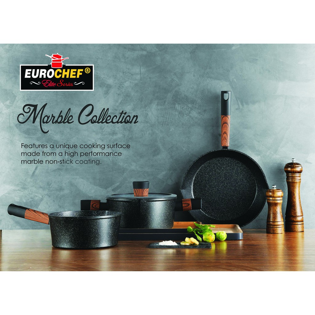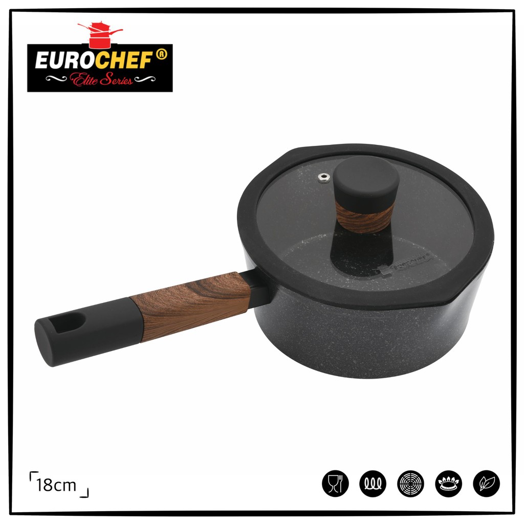 Eurochef 18cm Non-Stick Marble Sauce Pan Glass Lid Handle Aluminum Cookware Cooking Spout Pan EC04