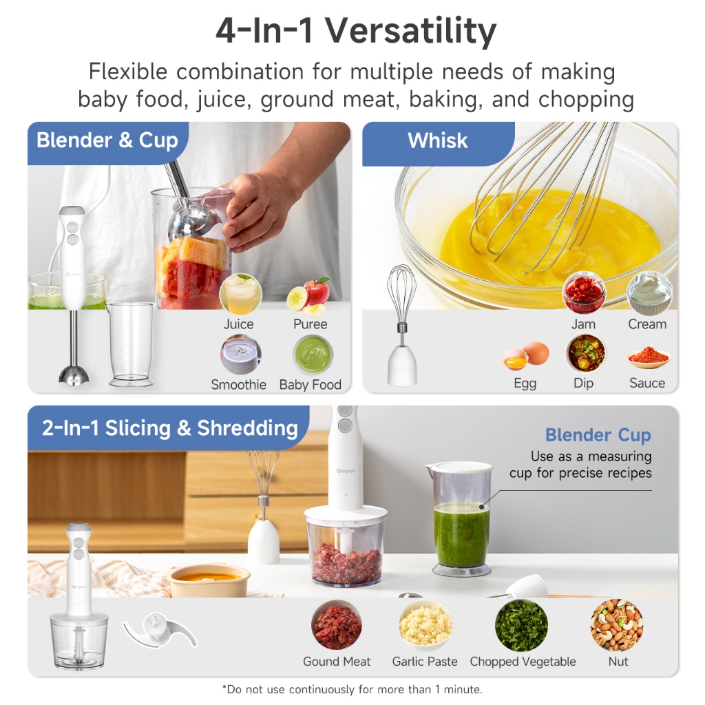 Simplus 4 in 1 Hand Mixer Immersion Blender 1L&1.1L Hand Blender Baby Food Processor Electric Multi Function