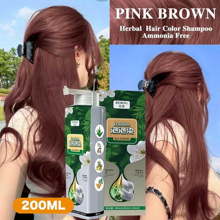 Hair Coloring Shampoo 200ml BEIROUR Herbal Pink Brown Ammonia Free Gray Coverage Hair Dye