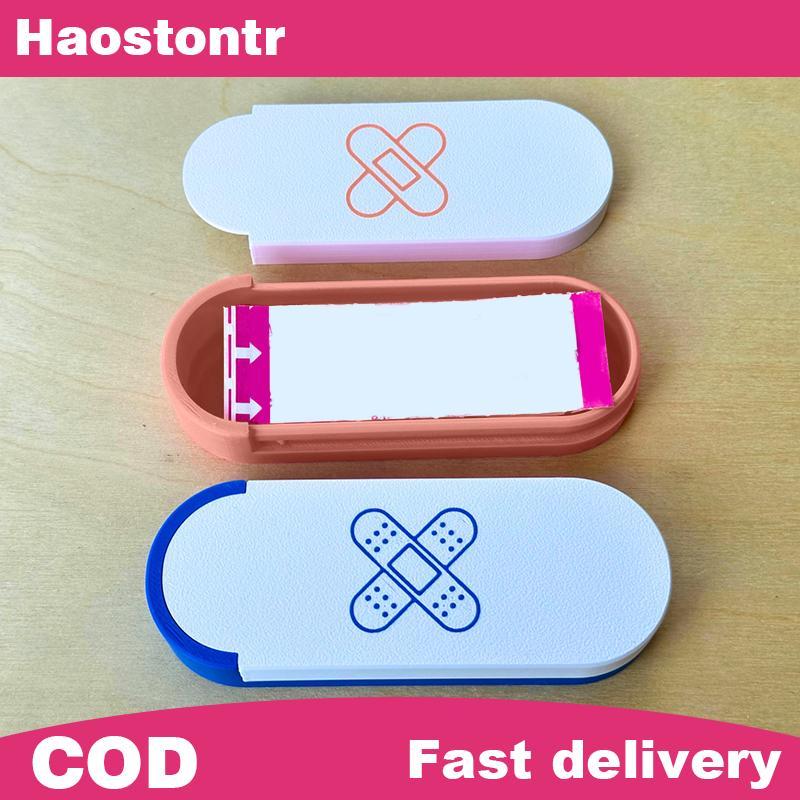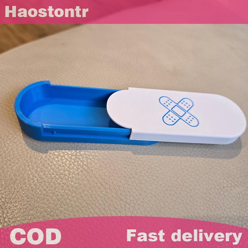 haostontr Colourful Cute Band-Aid Storage Box Portable Sliding Adhesive Bandage Holder Toothpicks Swabs Dental Flossers Organization Home Office Travel Essentials PH