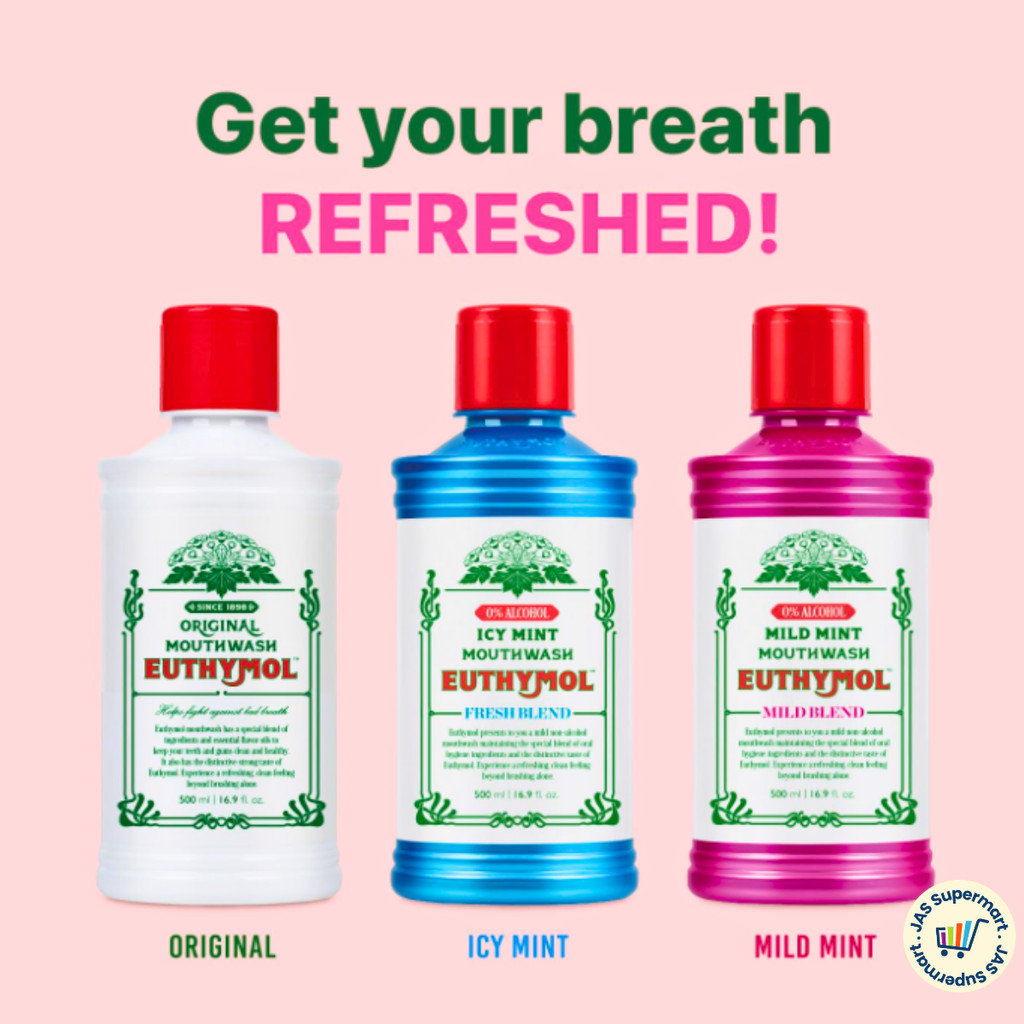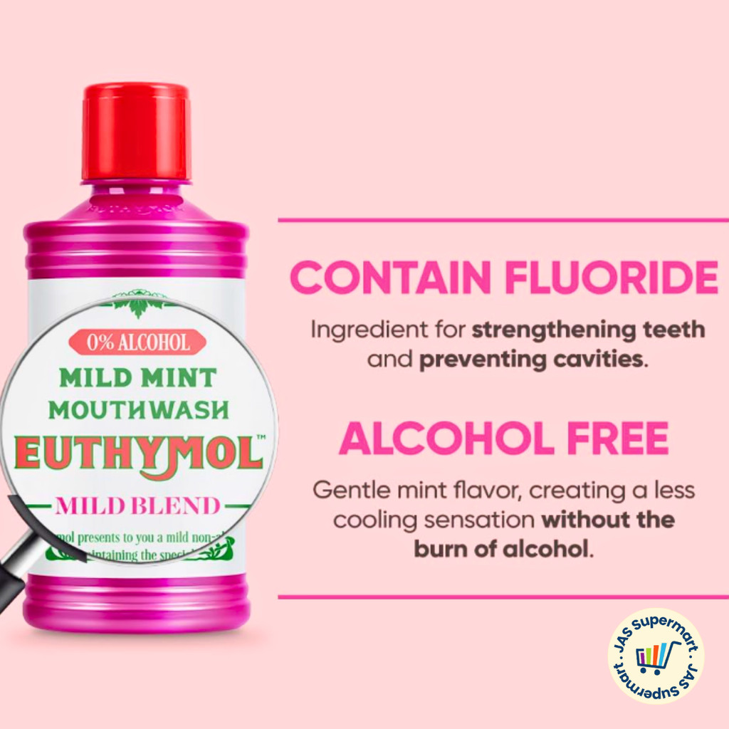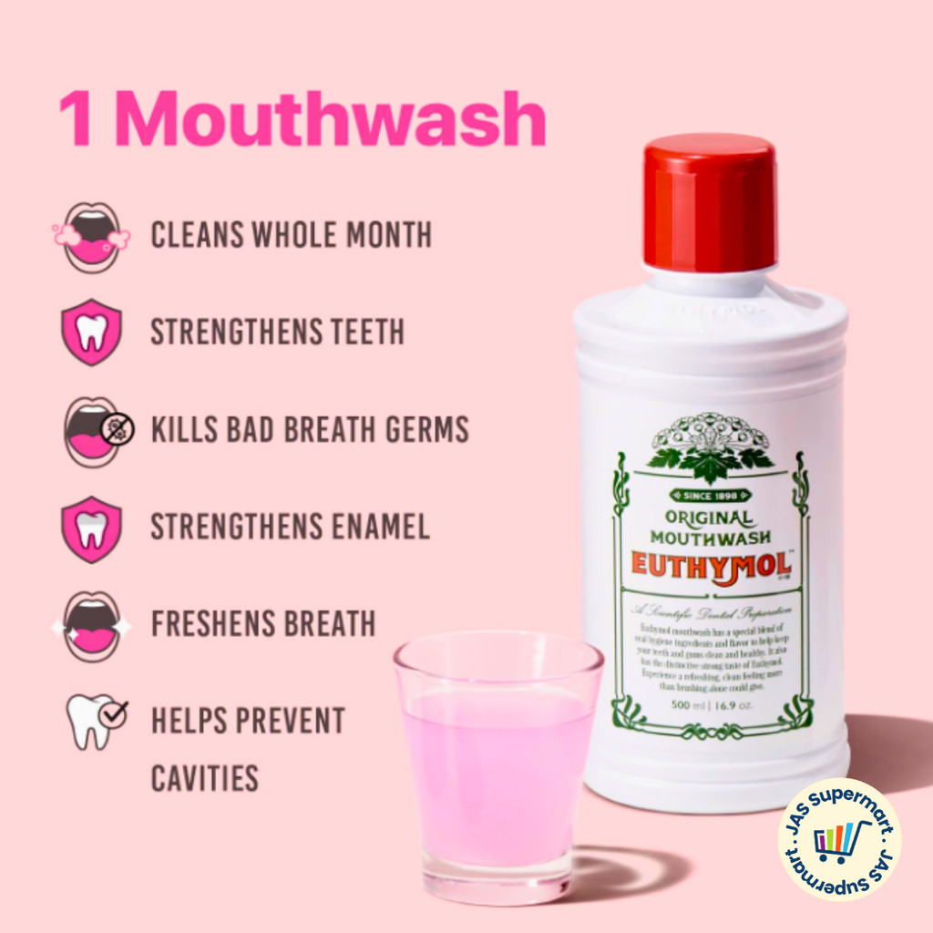 Euthymol Mouthwash 500ml - Alcohol-Free Strong Flavor Oral Care