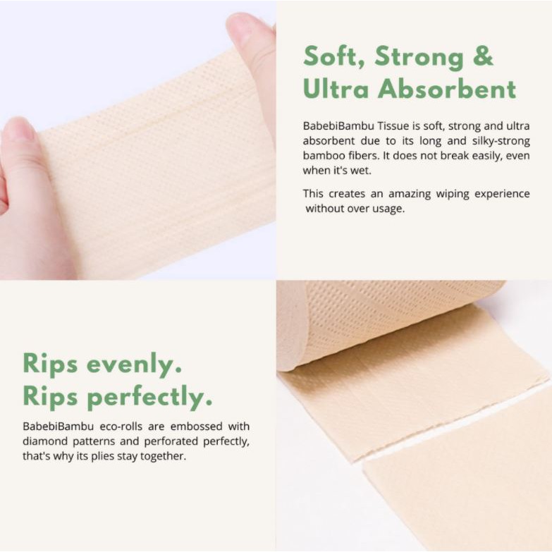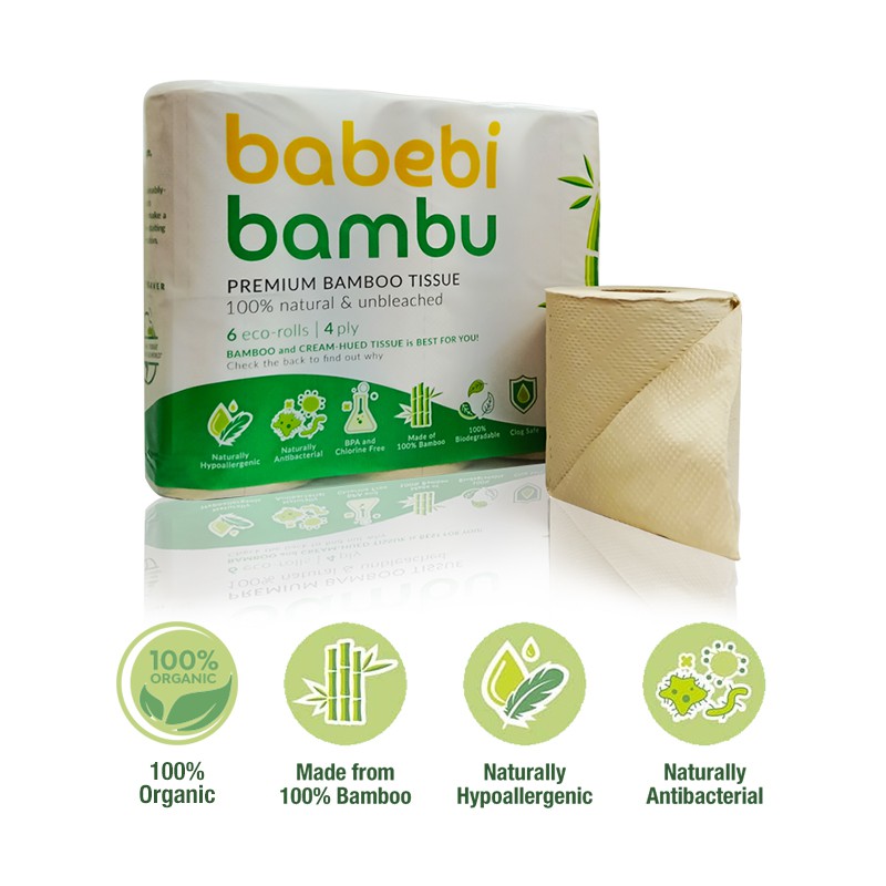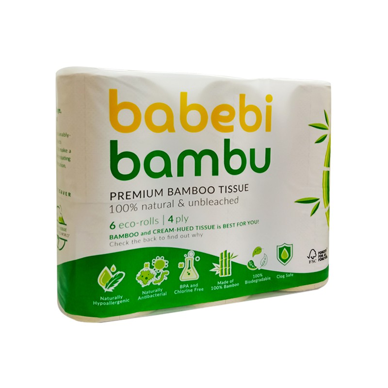 Organic Bamboo Tissue 4 Ply 6 Rolls (100% Bamboo, Antibacterial, Hypoallergenic, Babebibambu)