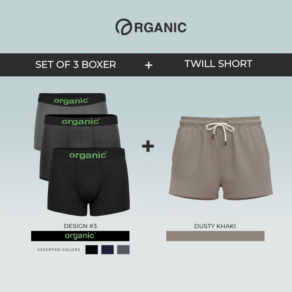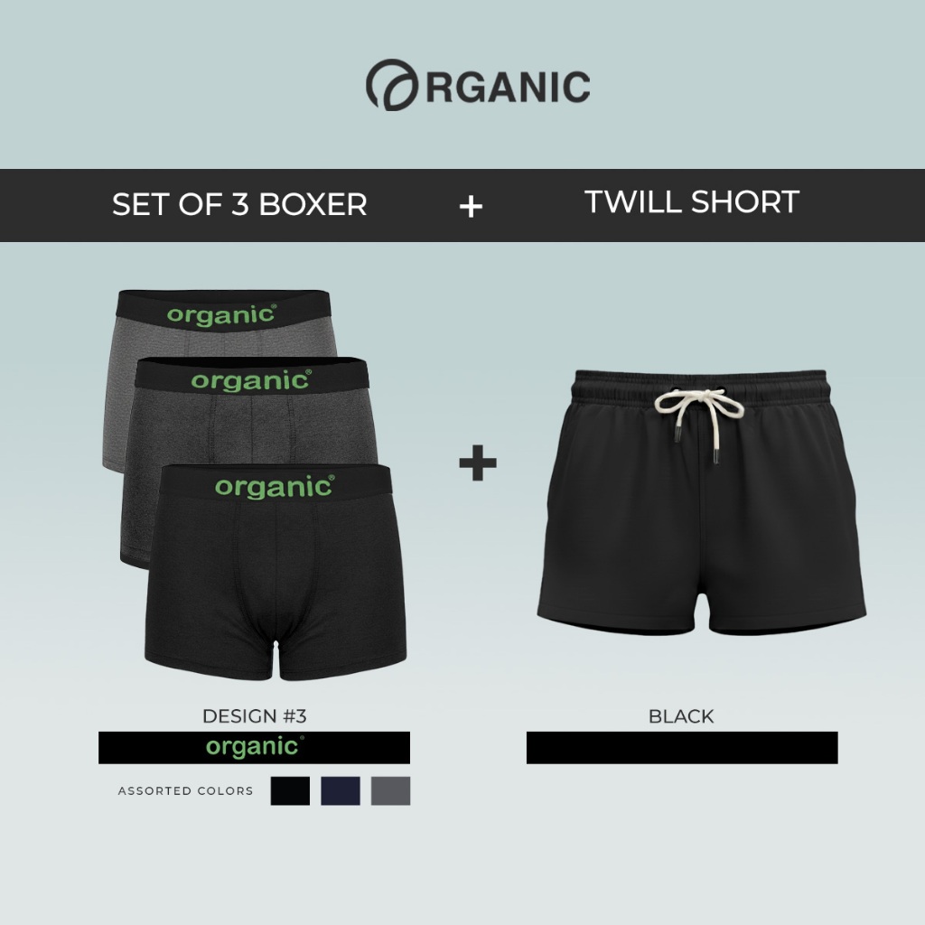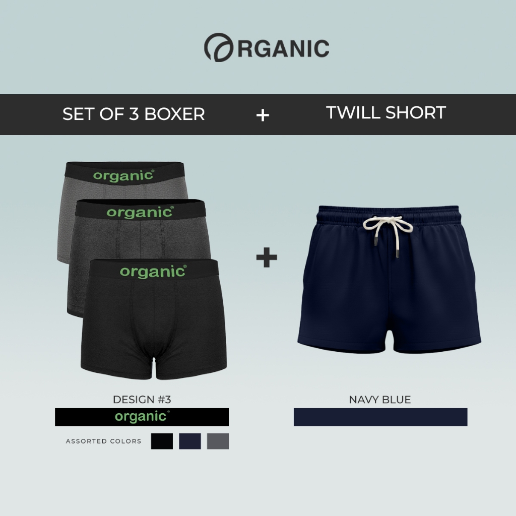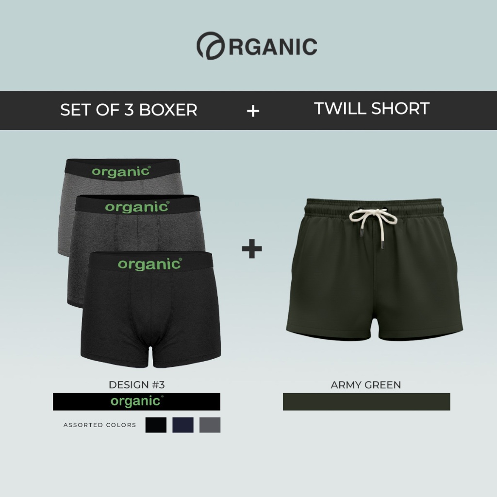 Organic Boxer Brief Mens 3 pcs Cotton Random Colors with FREE Twill Short for Men