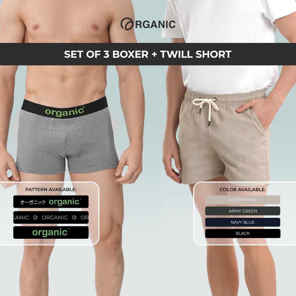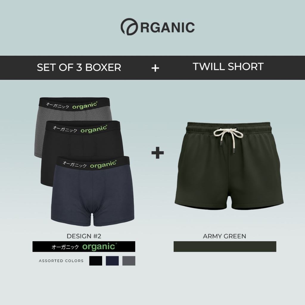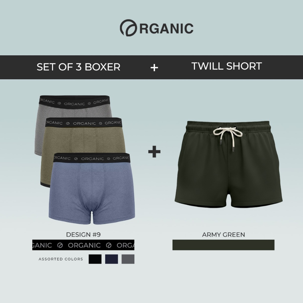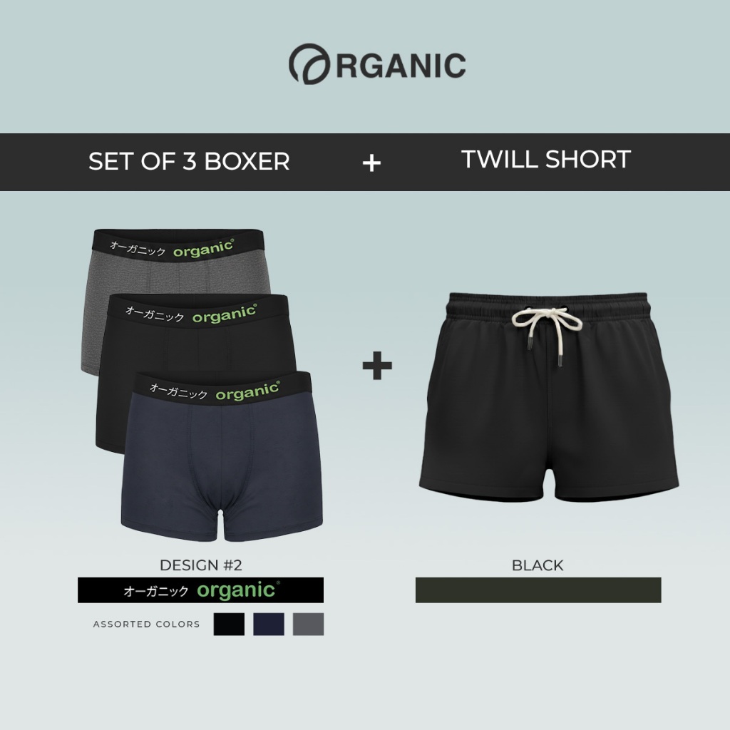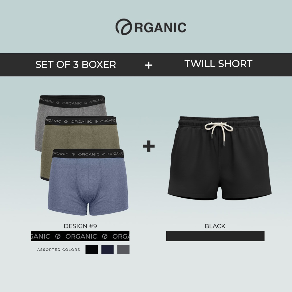 Organic Boxer Brief Mens 3 pcs Cotton Random Colors with FREE Twill Short for Men