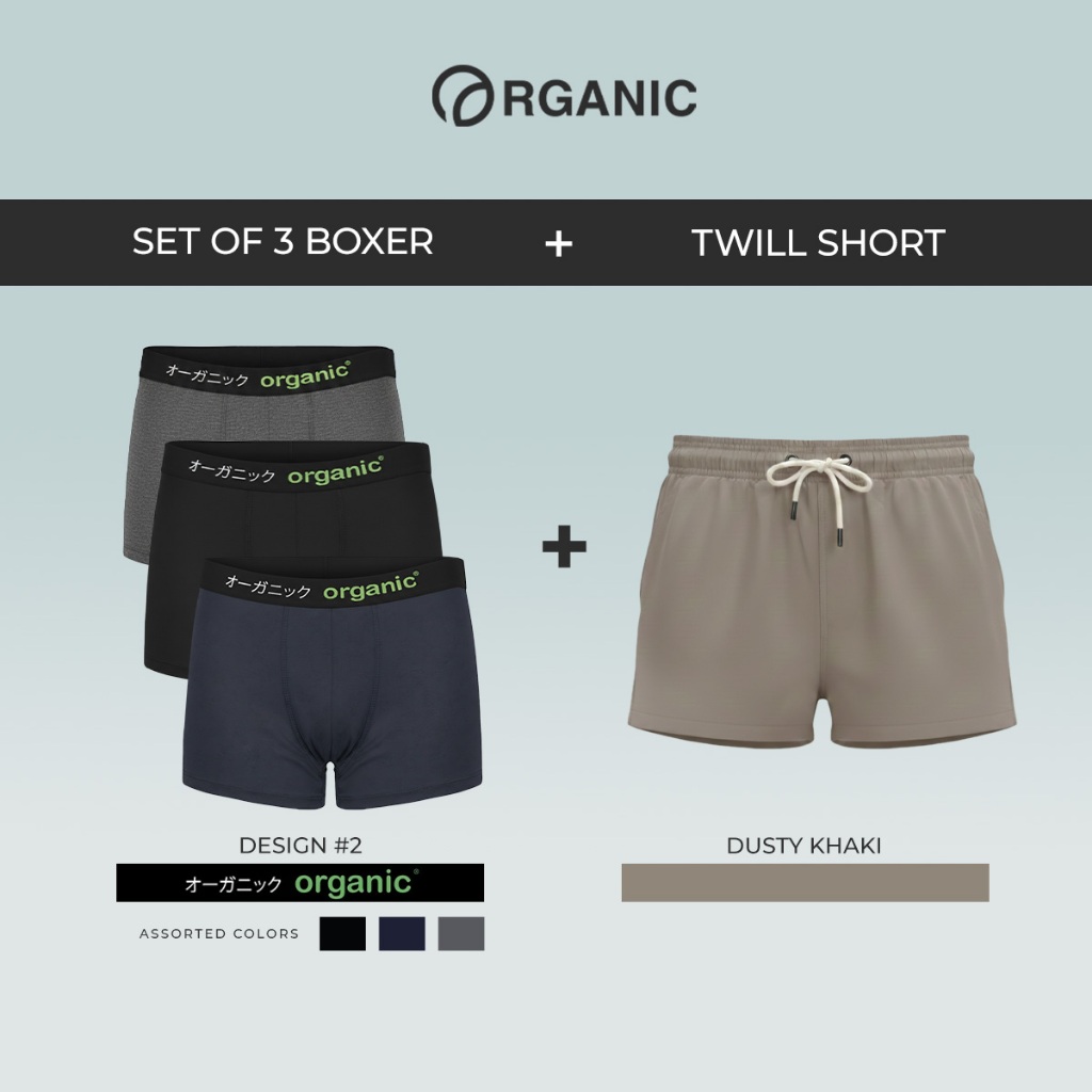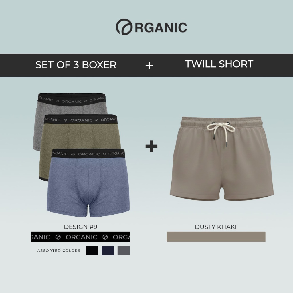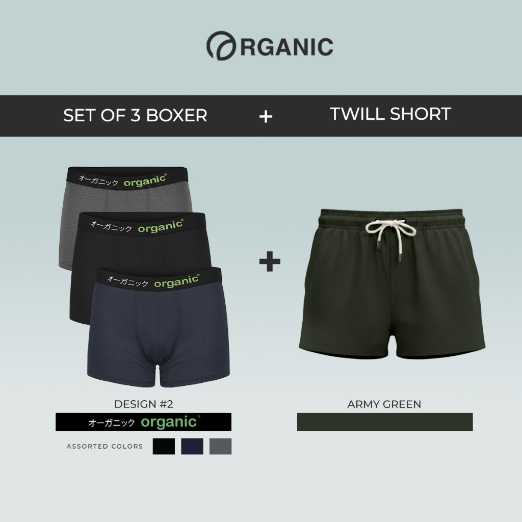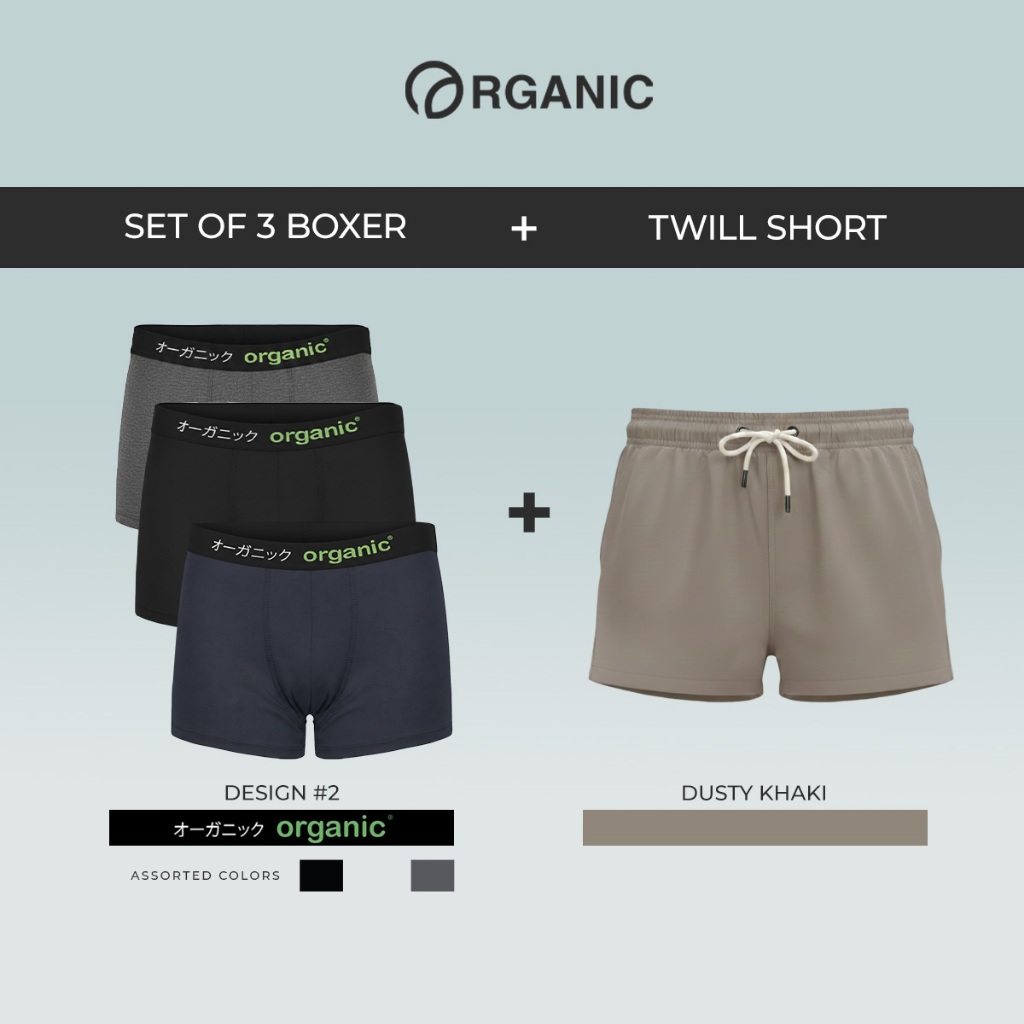 Organic Boxer Brief Mens 3 pcs Cotton Random Colors with FREE Twill Short for Men