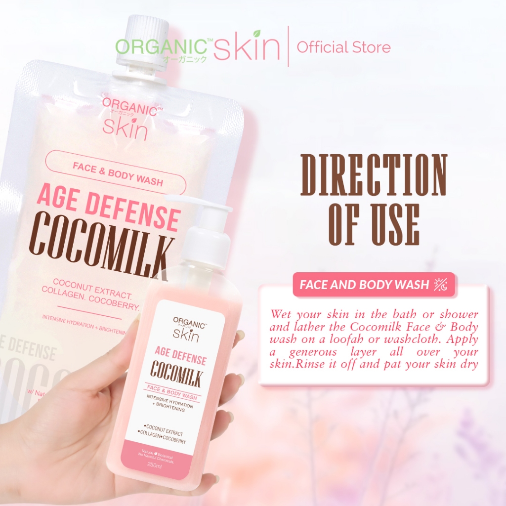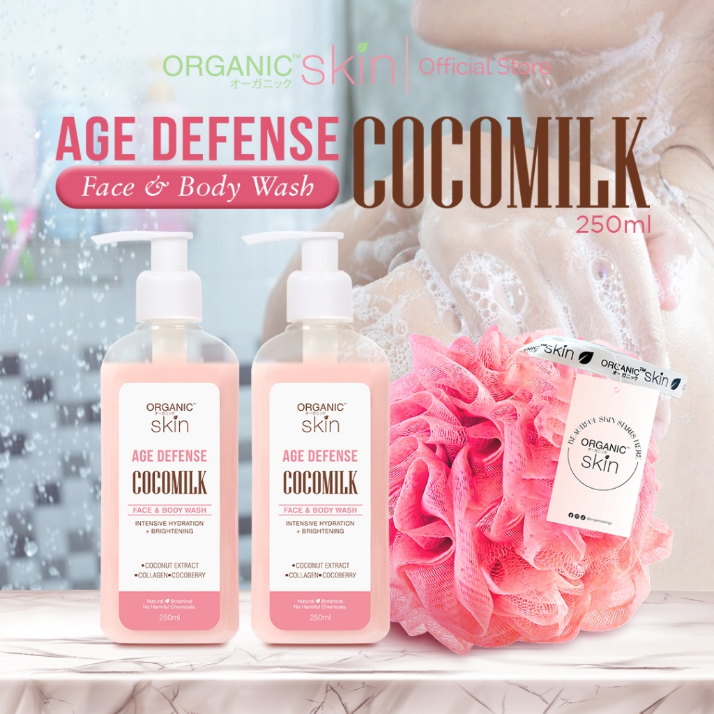 Organic Skin Japan Age Defense Coco Milk Face & Body Wash 250ml Bodywash with Collagen Set of 2