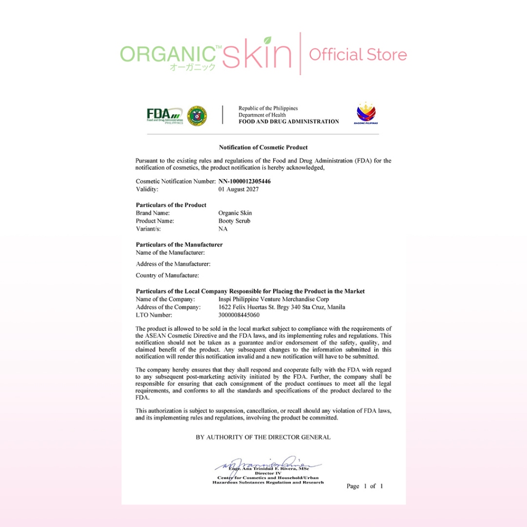 Organic Skin Japan Booty Scrub Lightening Exfoliant with Sunflower Oil 100ml