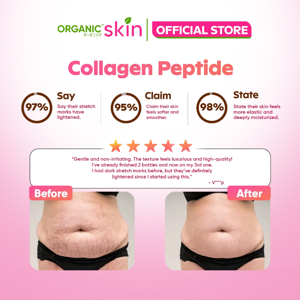 Organic Skin Topical Collagen Peptide 60ml Stretch Marks & Skin Treatment Set of 2
