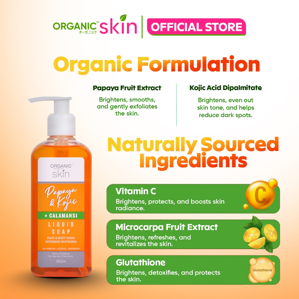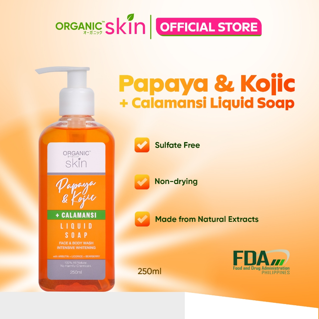 Organic Skin Japan Papaya & Kojic + Calamansi Liquid Soap 250 ml Moisture Face and Body Wash