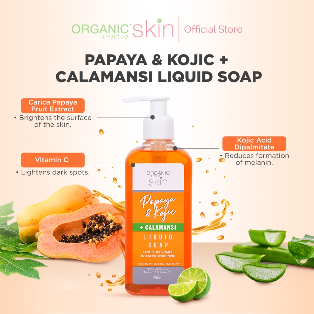 Organic Skin Japan Papaya & Kojic + Calamansi Liquid Soap 250 ml Moisture Face and Body Wash