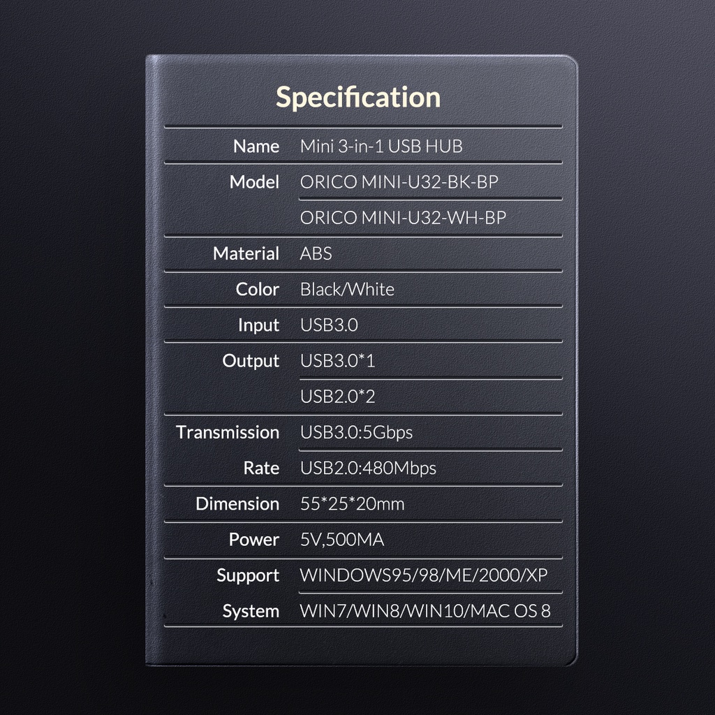 Orico Mini 3-In-1 USB HUB U32L Grey