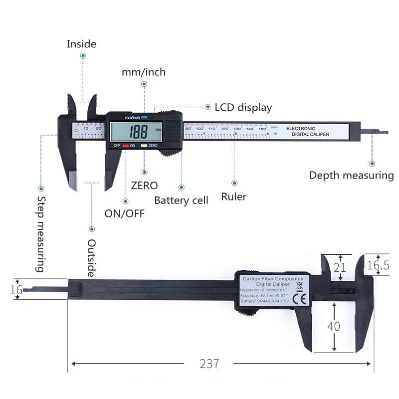 Oright 15cm 6inch Digital Electronic Carbon Fiber Vernier Caliper Gauge Micrometer Measuring Tool