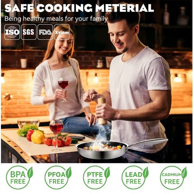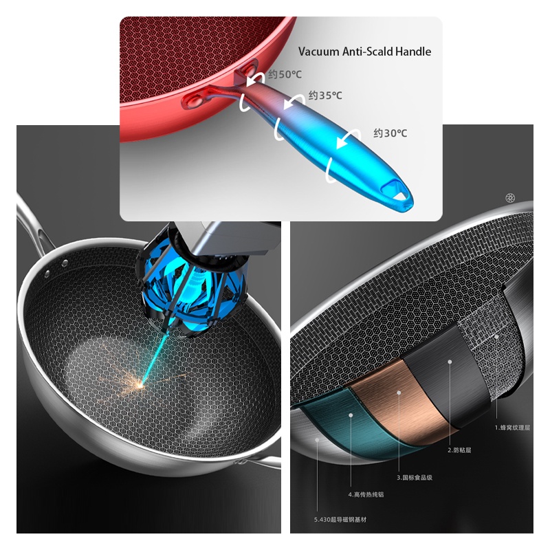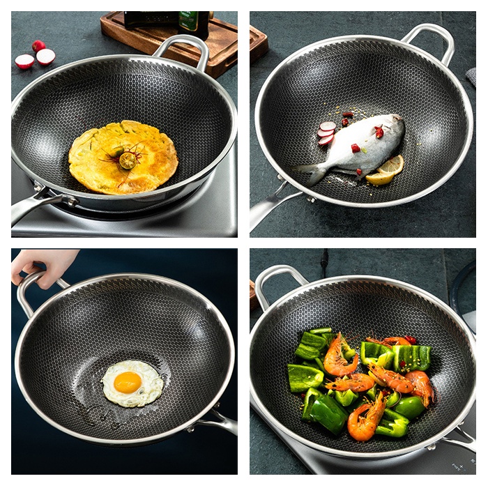 Original 32cm Stainless Steel Nonstick Frying Pan Honeycomb Stainless Steel Shallow Skillets Woks