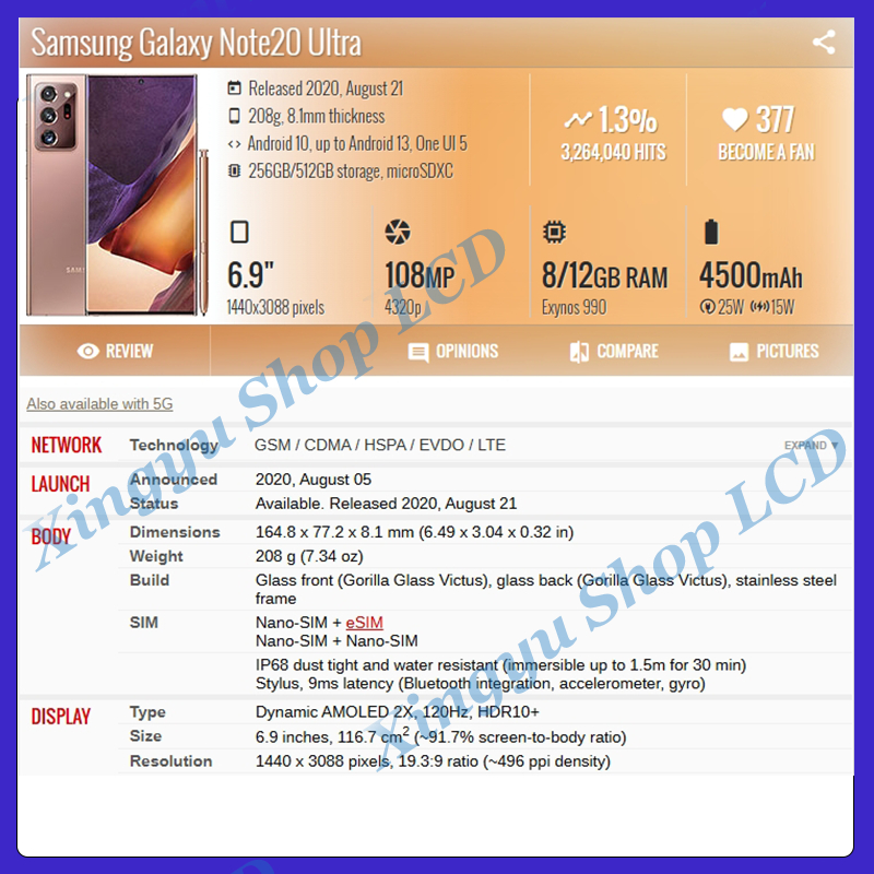 Original AMOLED For Samsung Galaxy Note 20 Ultra 4G 5G LCD Display Touch Screen Frame Replacement