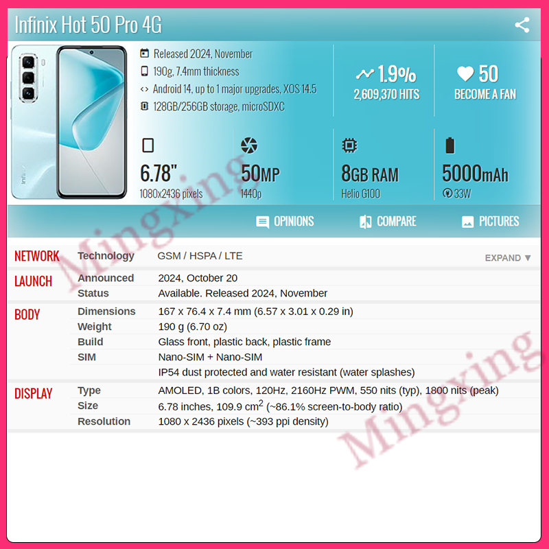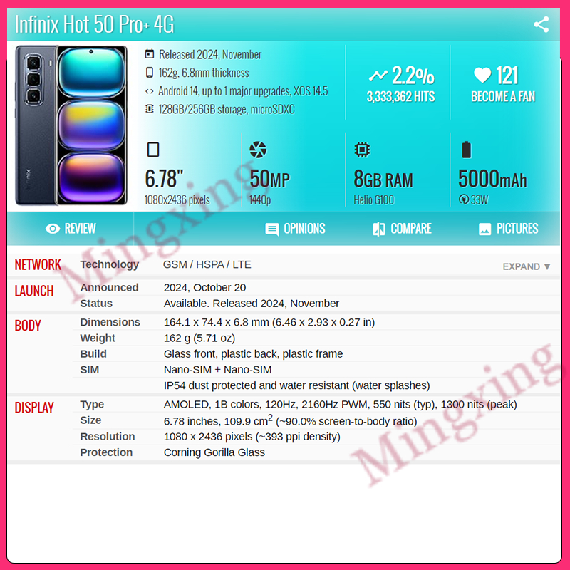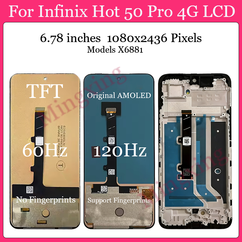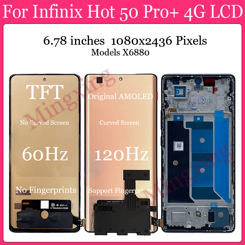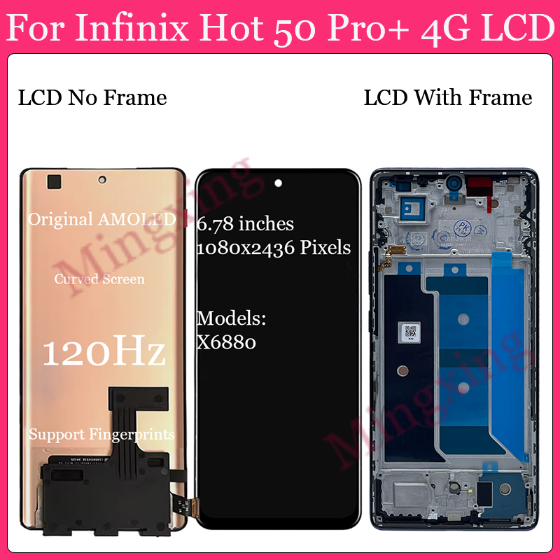Original AMOLED For Infinix Hot 50 Pro 4G Hot 50 Pro Plus 4G LCD Display Touch Screen Replacement