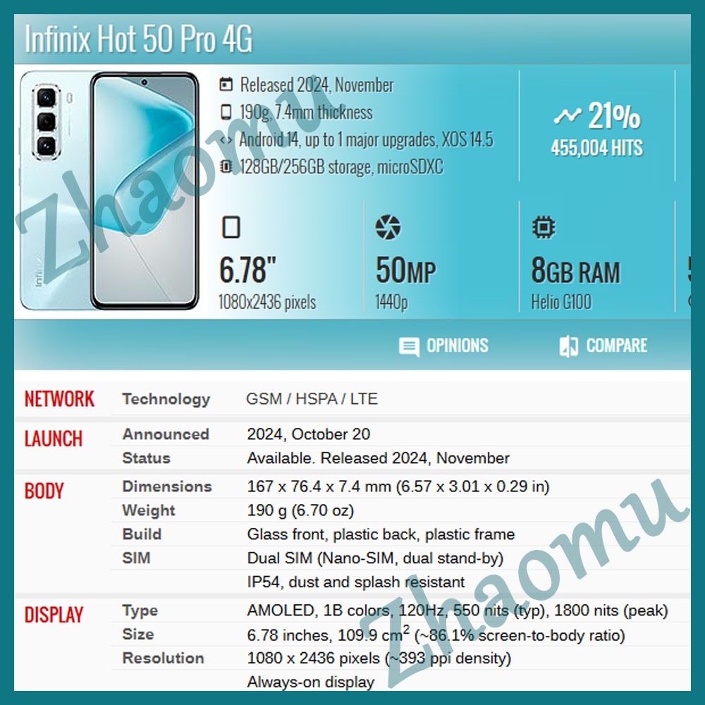 Original AMOLED Infinix Hot 50 Pro Hot 50 Pro Plus 4G LCD Display Touch Screen Replacement