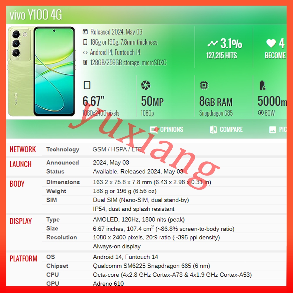 Original AMOLED OLED TFT Vivo Y100 4G LCD Display Touch Screen Replacement