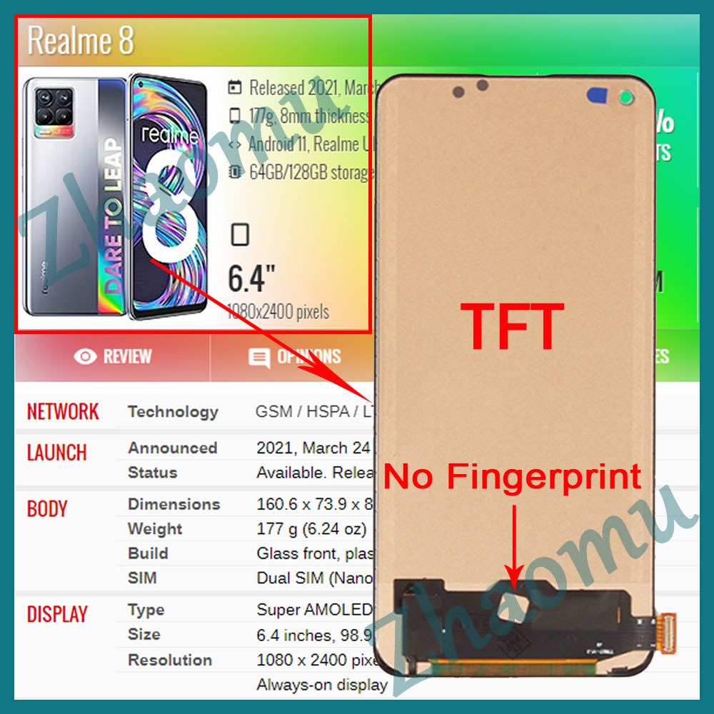 Original AMOLED Realme 8 4G 5G 8i 8 Pro LCD Display Touch Screen Replacement