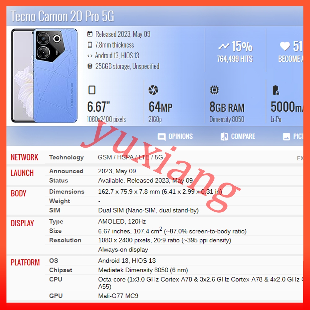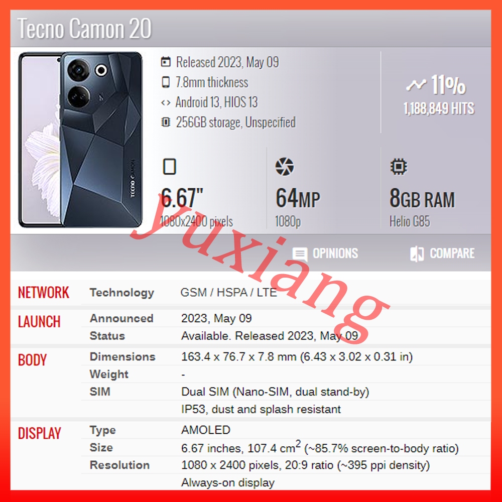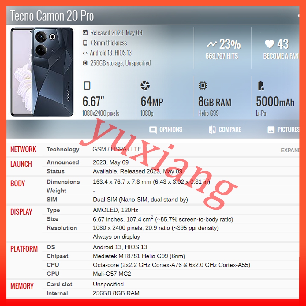 AMOLED TFT For Tecno Camon 20 Camon 20 Pro 4G Camon 20 Pro 5G LCD Display Touch Screen Replacement