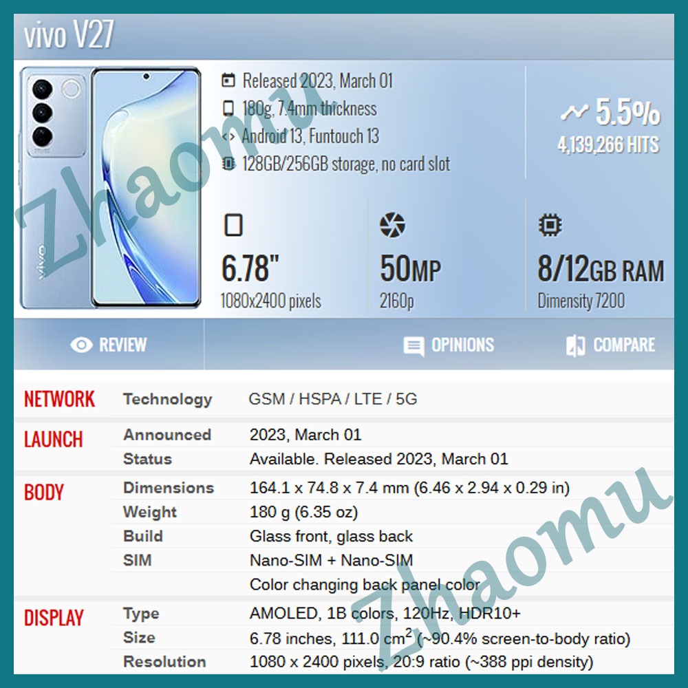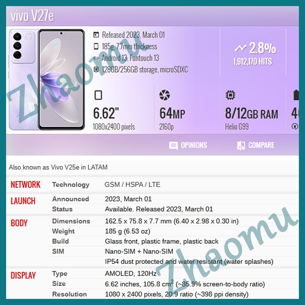Original AMOLED Vivo V27 5G V27e LCD Display Touch Screen Replacement