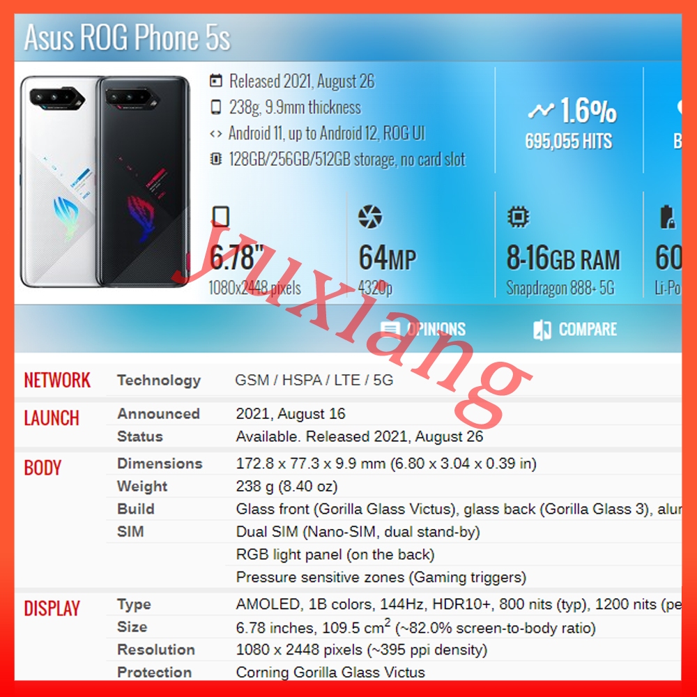 Original Asus ROG Phone 5 ROG Phone 5s LCD Display Touch Screen With Frame Replacement