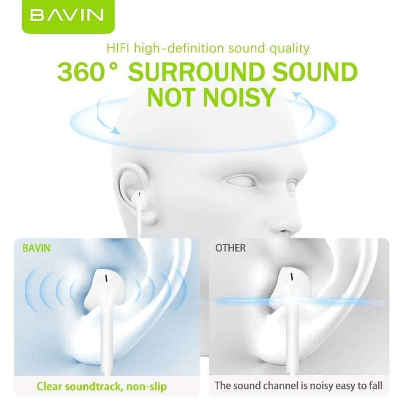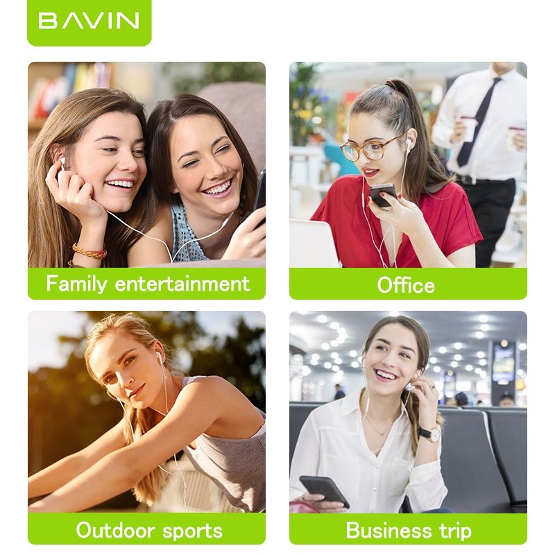 Original BAVIN Universal 3.5m Jack Headset in-Ear Earphone Mic Microphone 3D Stereo Sound