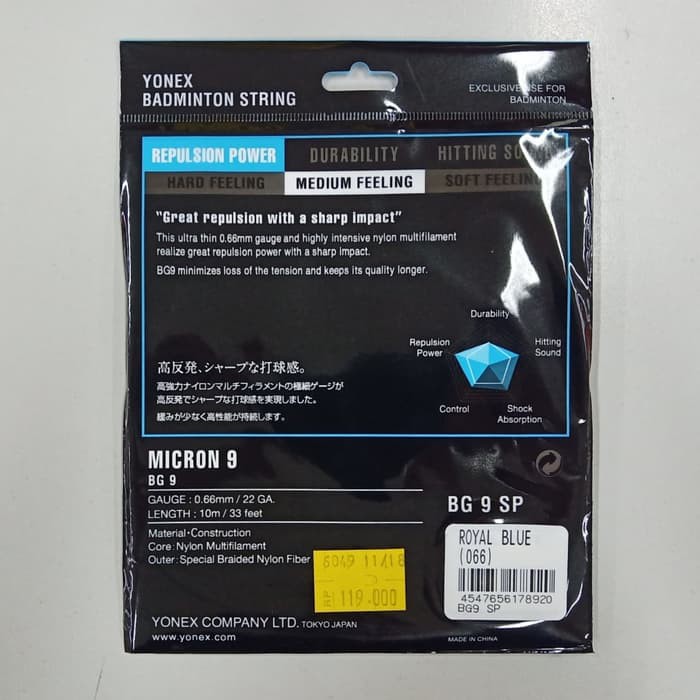 Badminton Racket Strings BG 9 Repulsion Power Original