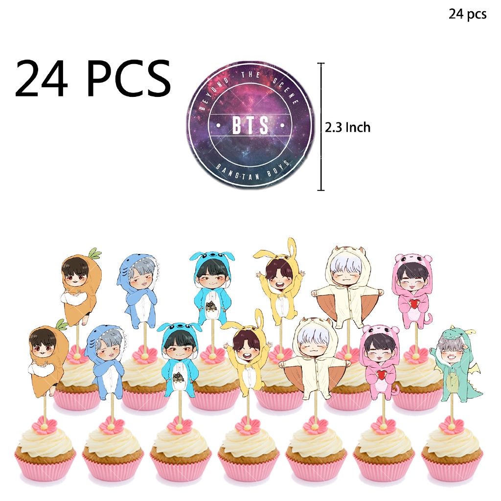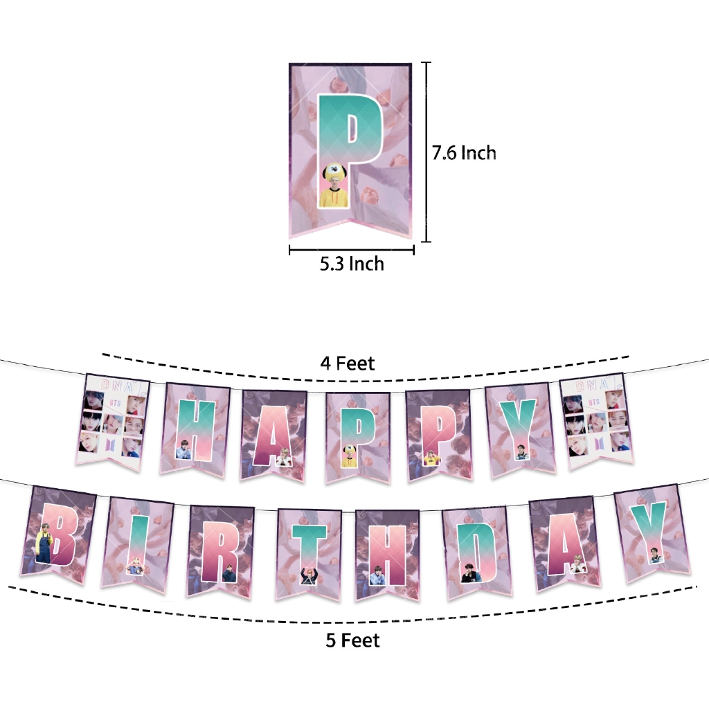 Original BTS Theme Party Decoration BTS Pull Flag Star Cake Card Balloon Birthday Set