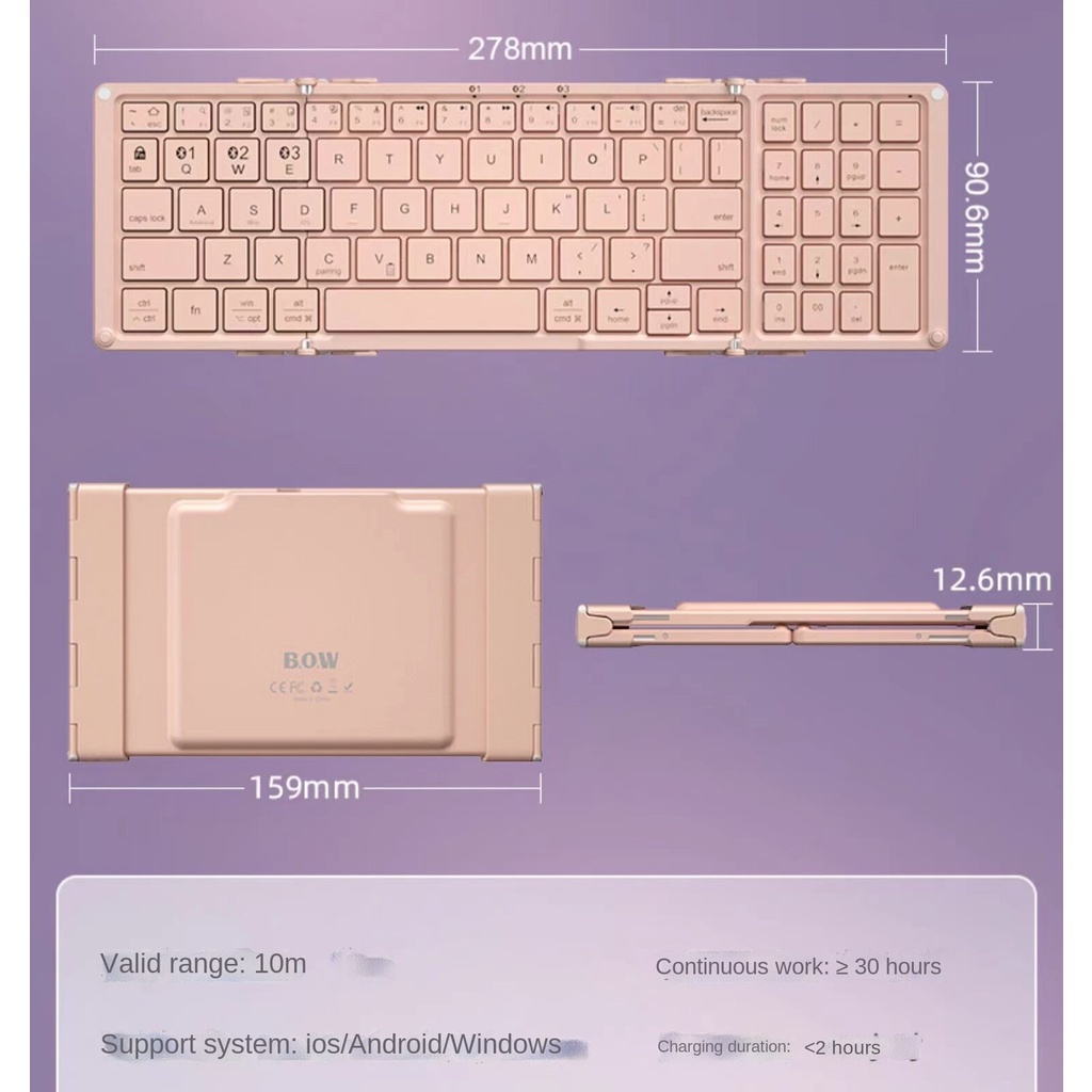 Original Bow Wireless foldable portable Keyboard and mouse set Rechargeable bluetooth keyboard laptop mobile phone tablet ultra-thin Lovely pink office typing hb166
