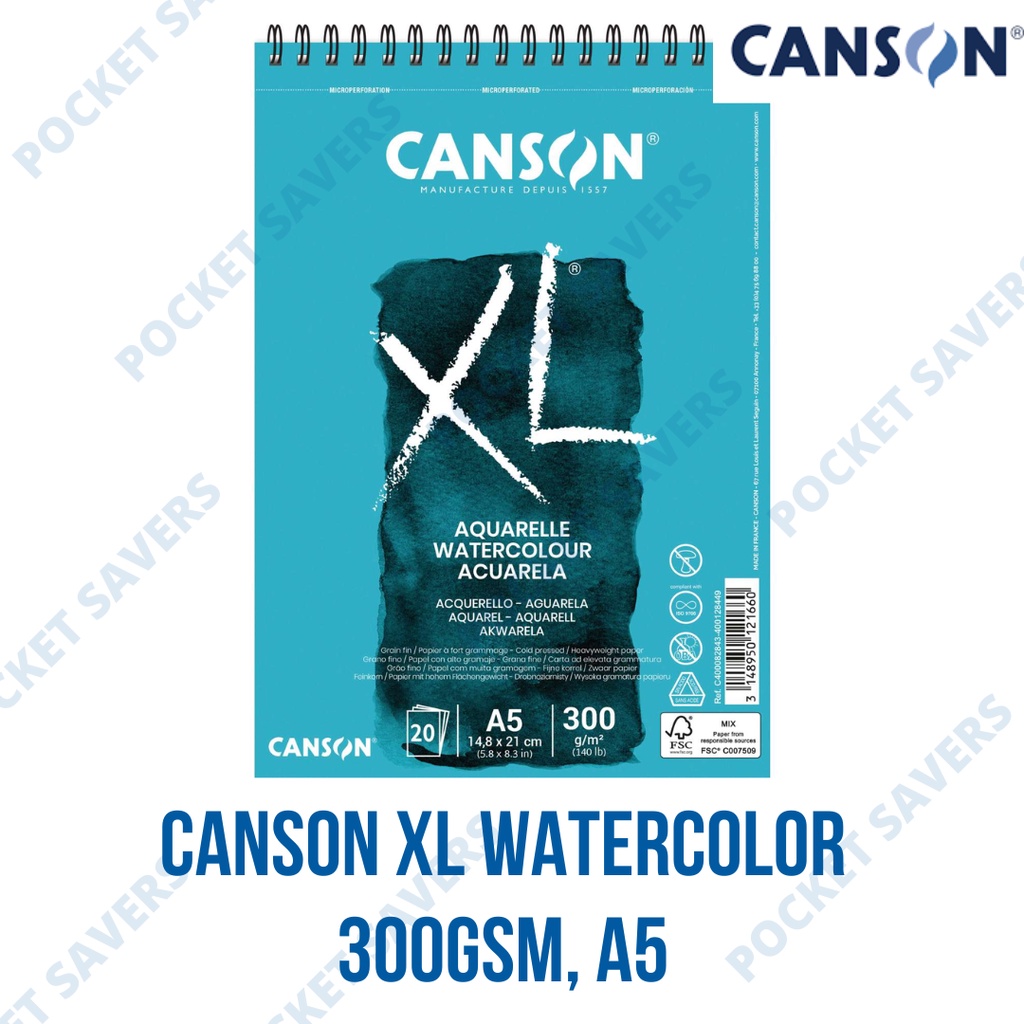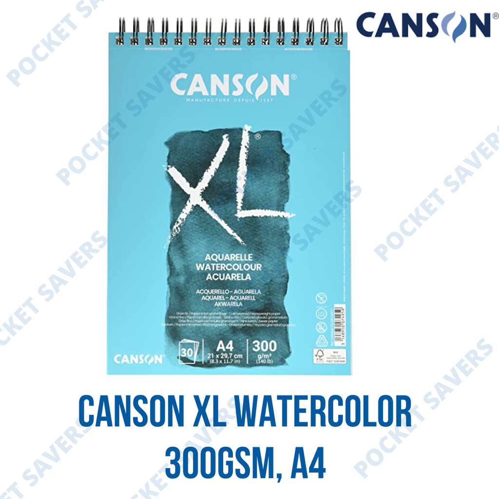 Original CANSON XL Aquarelle 300 gsm (A5 / A4 Light Grained, Watercolor Paper, Sketch Pad)