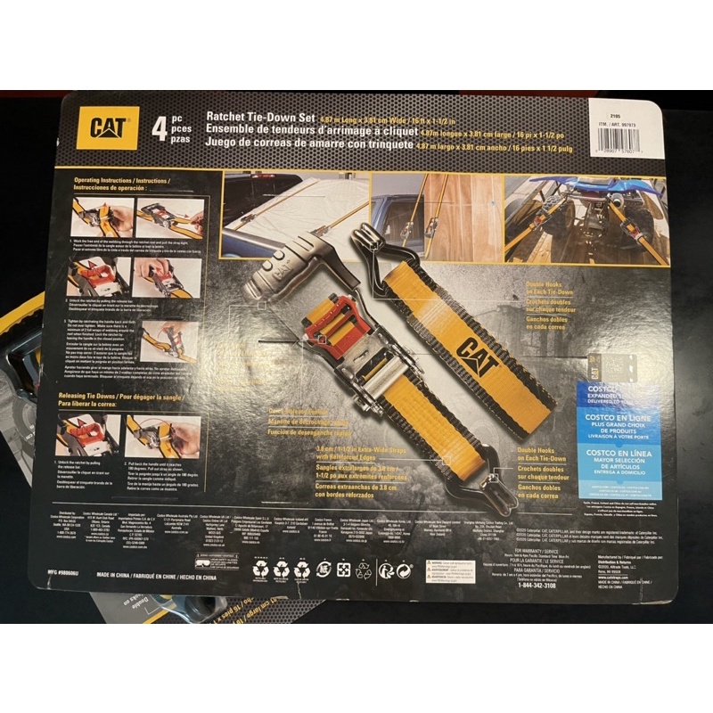 Original CAT Caterpillar Heavy Duty Ratchet Tie-down Set of 4pcs.