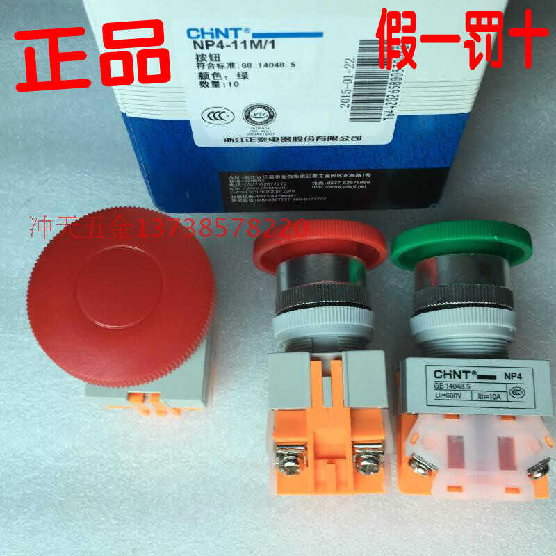 Original Chint NP4-11M/1 mushroom head self replicating button switch, complete in red and