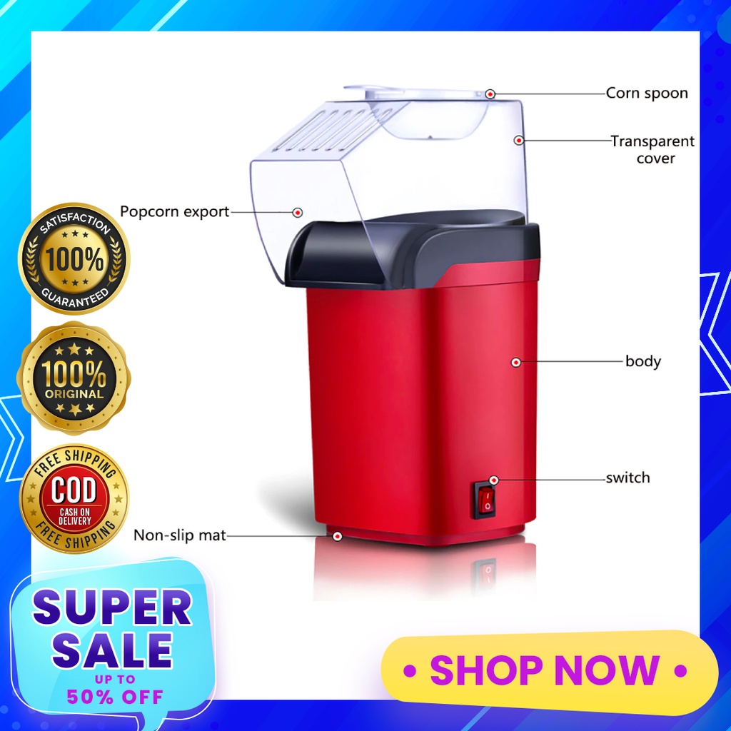 Original Electric Hot Air Popcorn Maker Retro Machine Cinema Home Gastronomic Fat-free an Easy to u