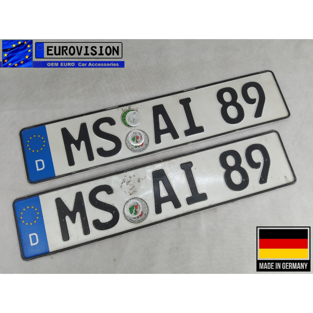 Original Euro Plates from Germany with centered Plate number - Various German Used Plate Pair