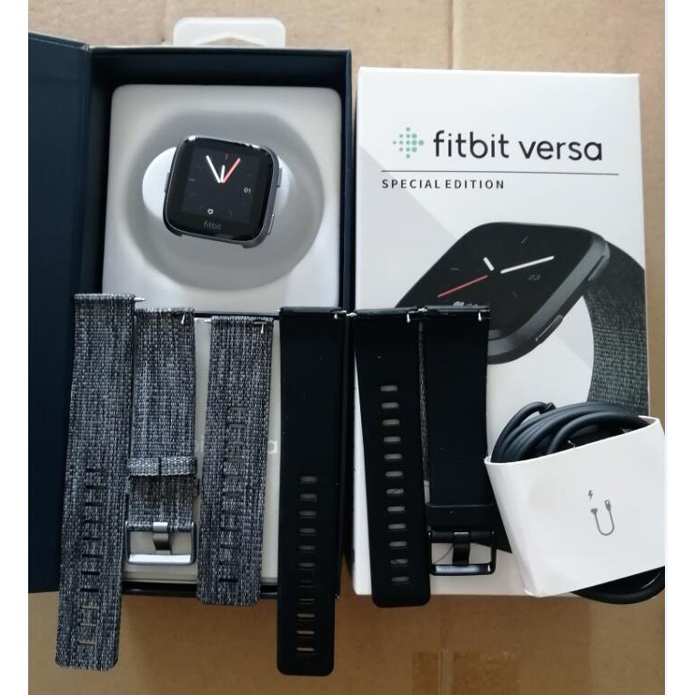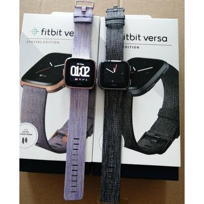Original Fitbit Versa Special Edition Smartwatch Activity Fitness Tracker Lavender and Charcoal Color Small Large Silicone Woven Bands