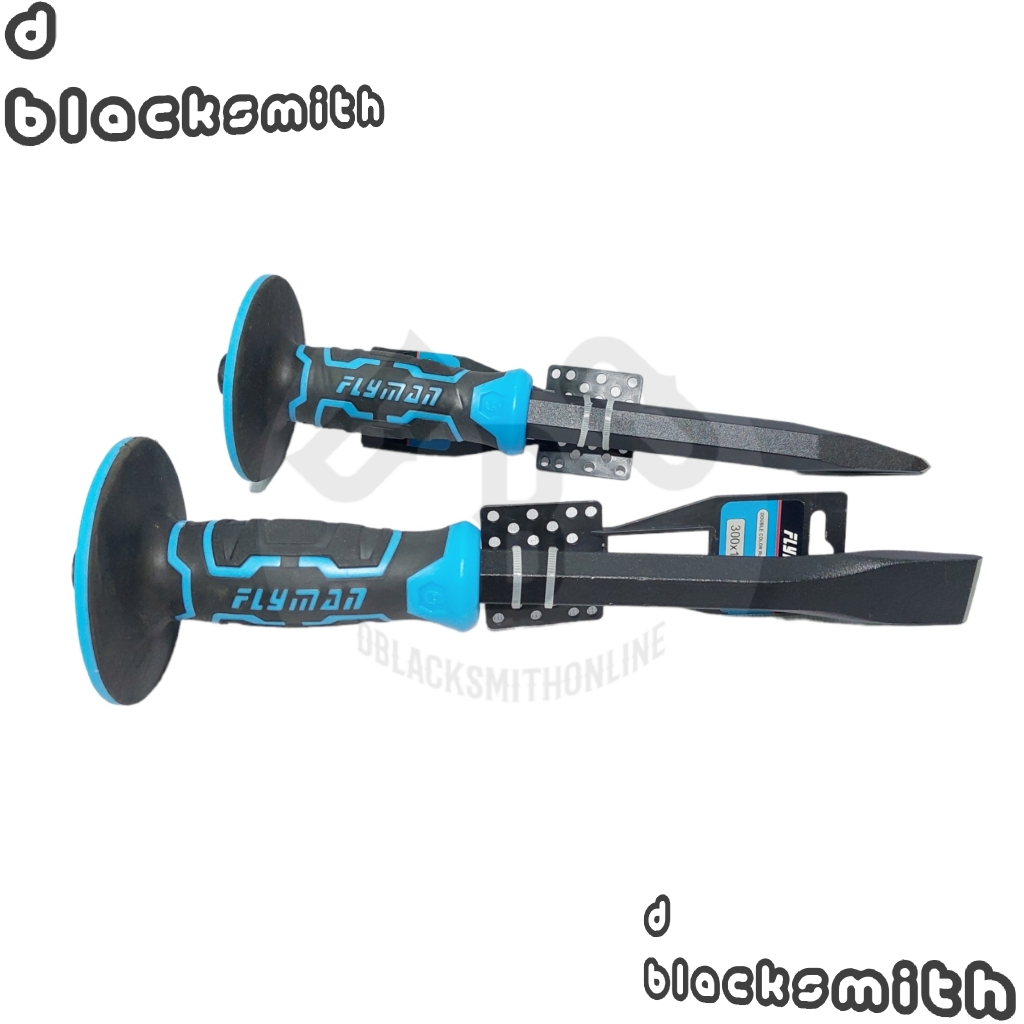 Original Flyman 12-Inch Heavy Duty Flat & Pointed Chisel Set with Hand Protection (Sinsel,Pait)