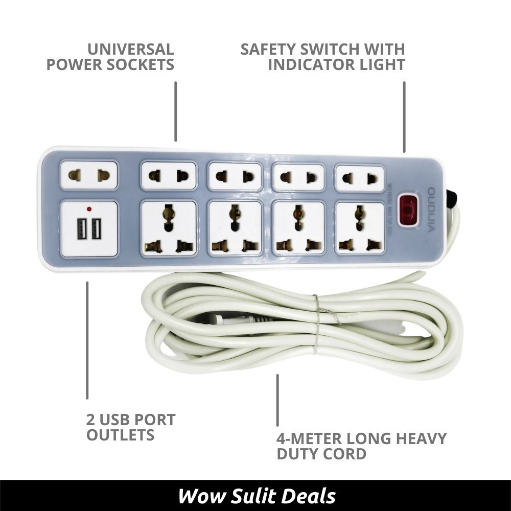 Original Heavy MultiFunction Sockets Strip with 9 Power Socket + 2 USB Ports