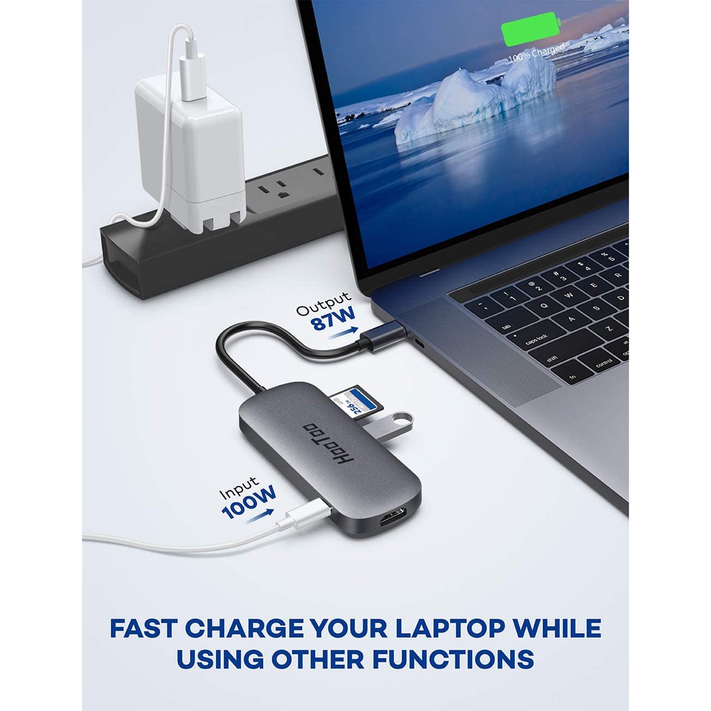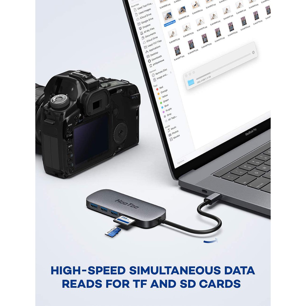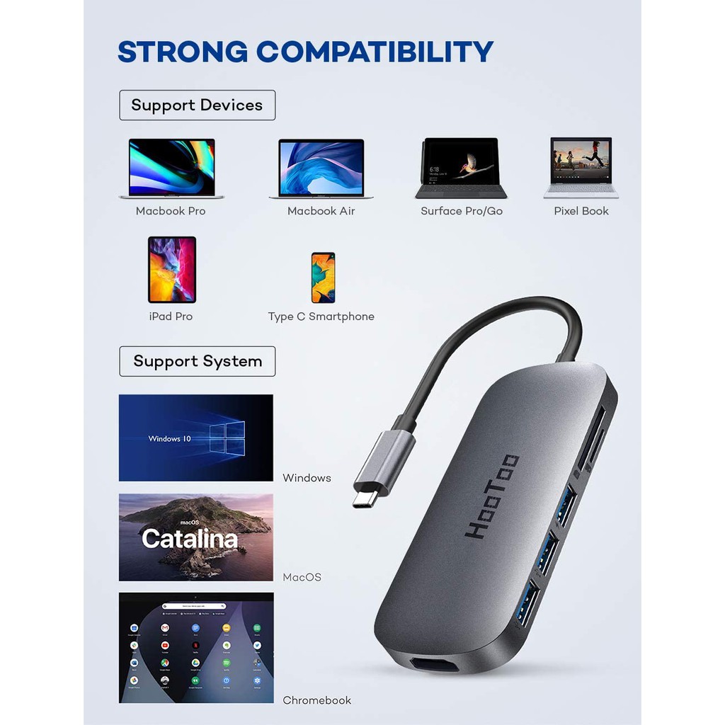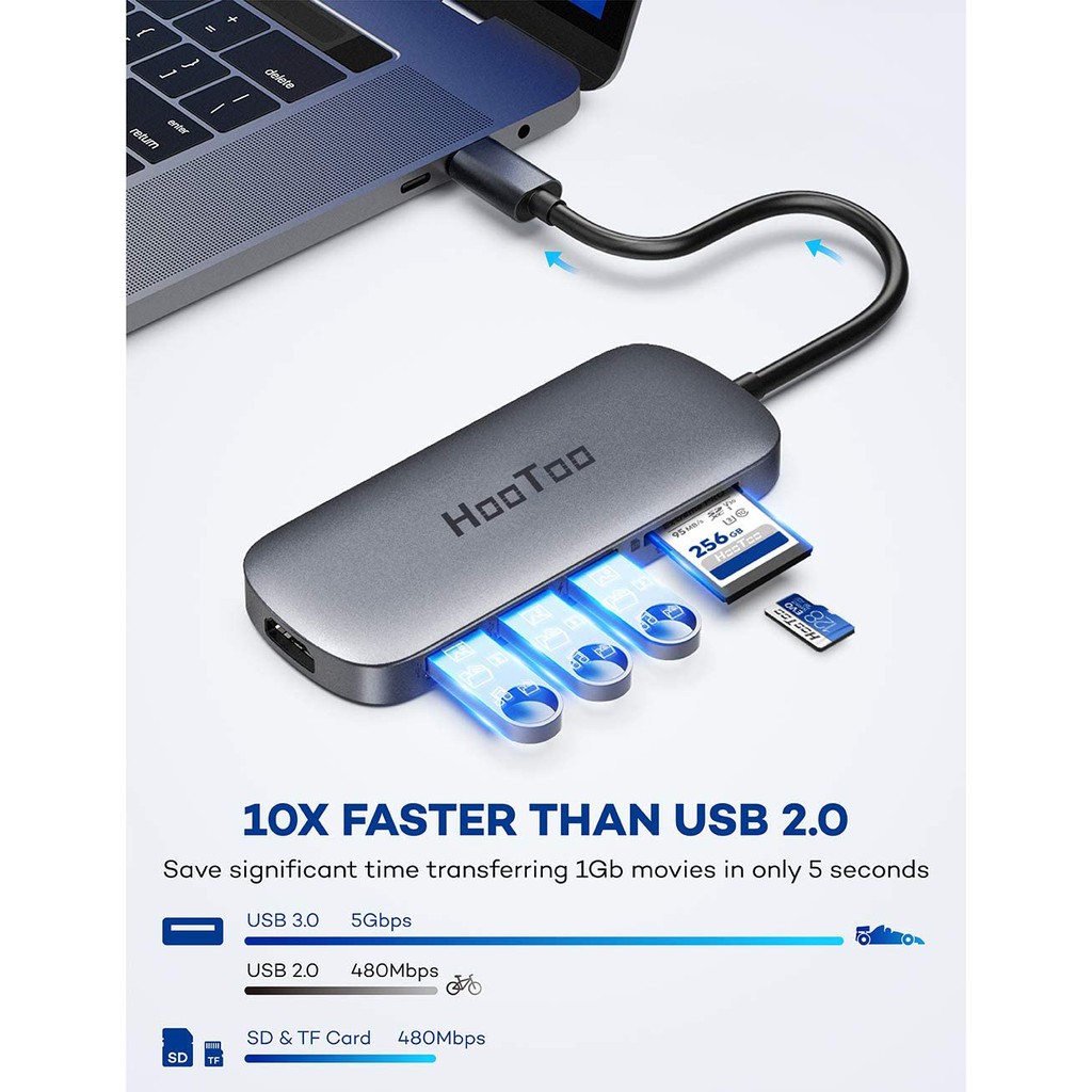 Original HooToo 7 in 1 USB C Hub, 4K HDMI Adapter with 100W PD Charging, 3 USB 3.0 Ports, SD/TF Card