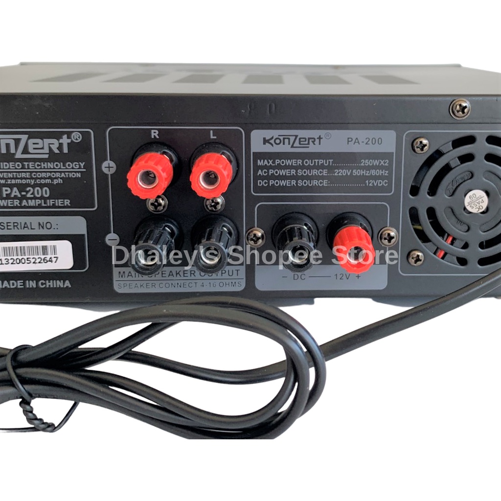 Original Konzert PA-200 AC-DC Amplifier 250watts PA/Karaoke amplifier w/ USB/SD, 2 mic input and 12v