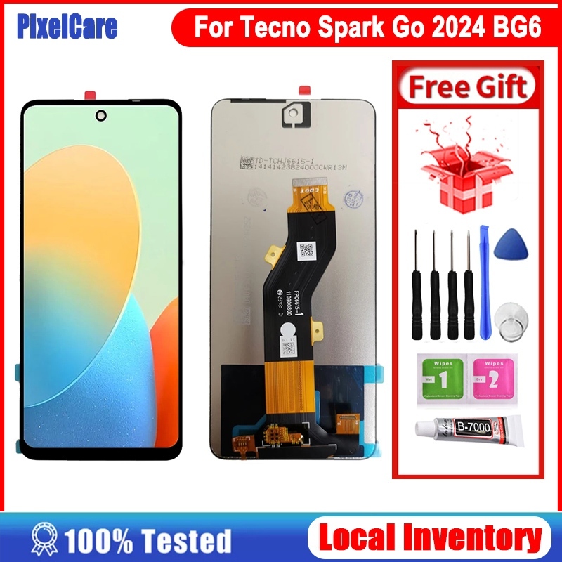 Pixelcare Original LCD With Frame For Tecno Spark Go 2024 BG6/Go 2025/Spark go 2023 BF7n/Spark go 2022 (kg5 kg5h)/Spark Go 2020 LCD Display Touch Screen Digitizer Assembly Replacement