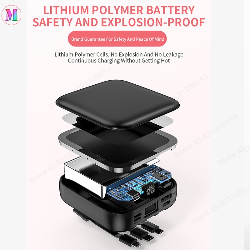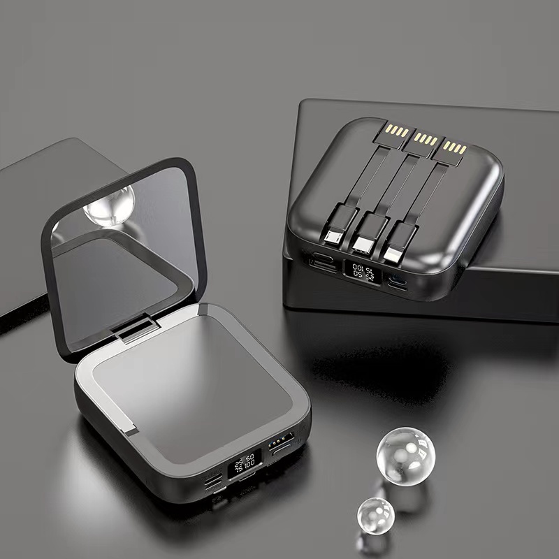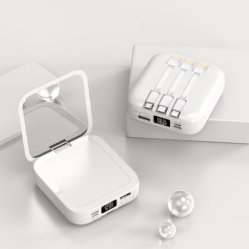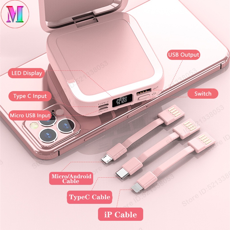 Original Mini Powerbank 30000mah Built in Cable Power Bank Portable Charger Makeup Mirror Powerbanks