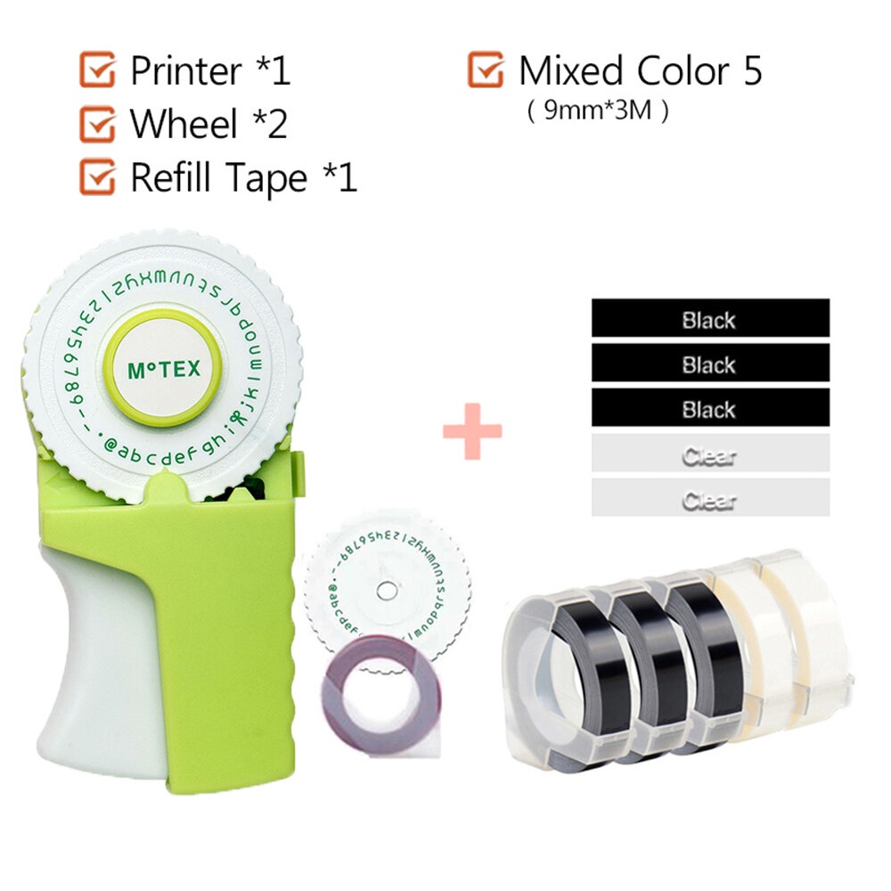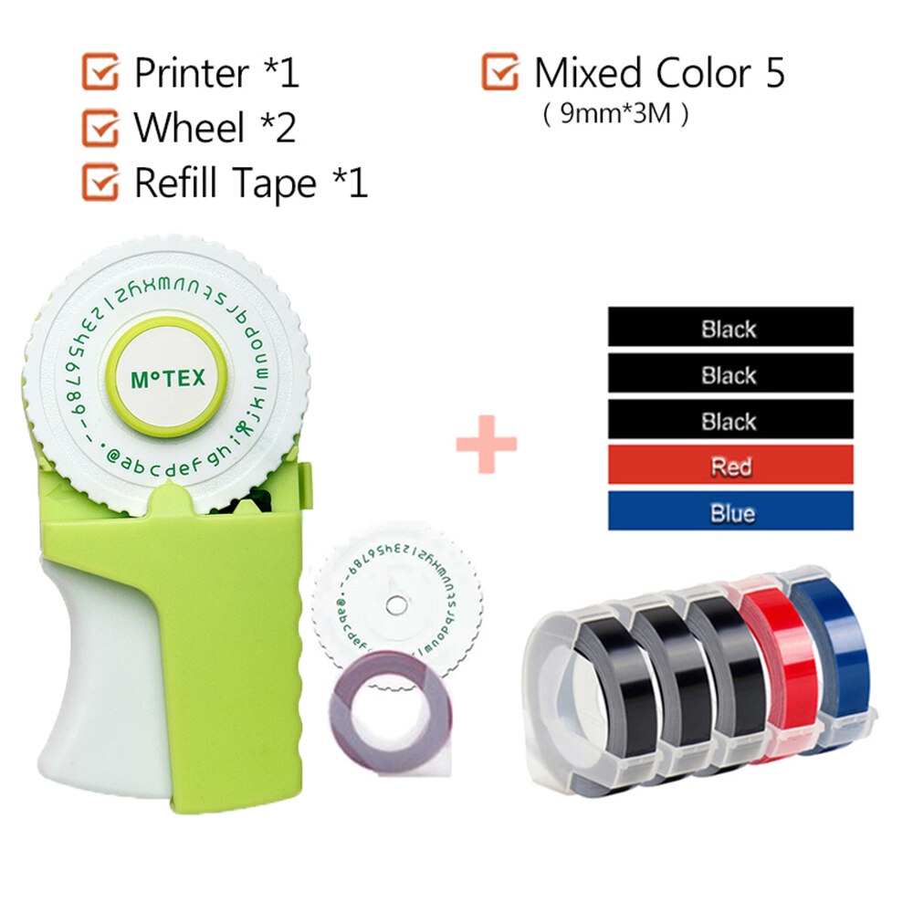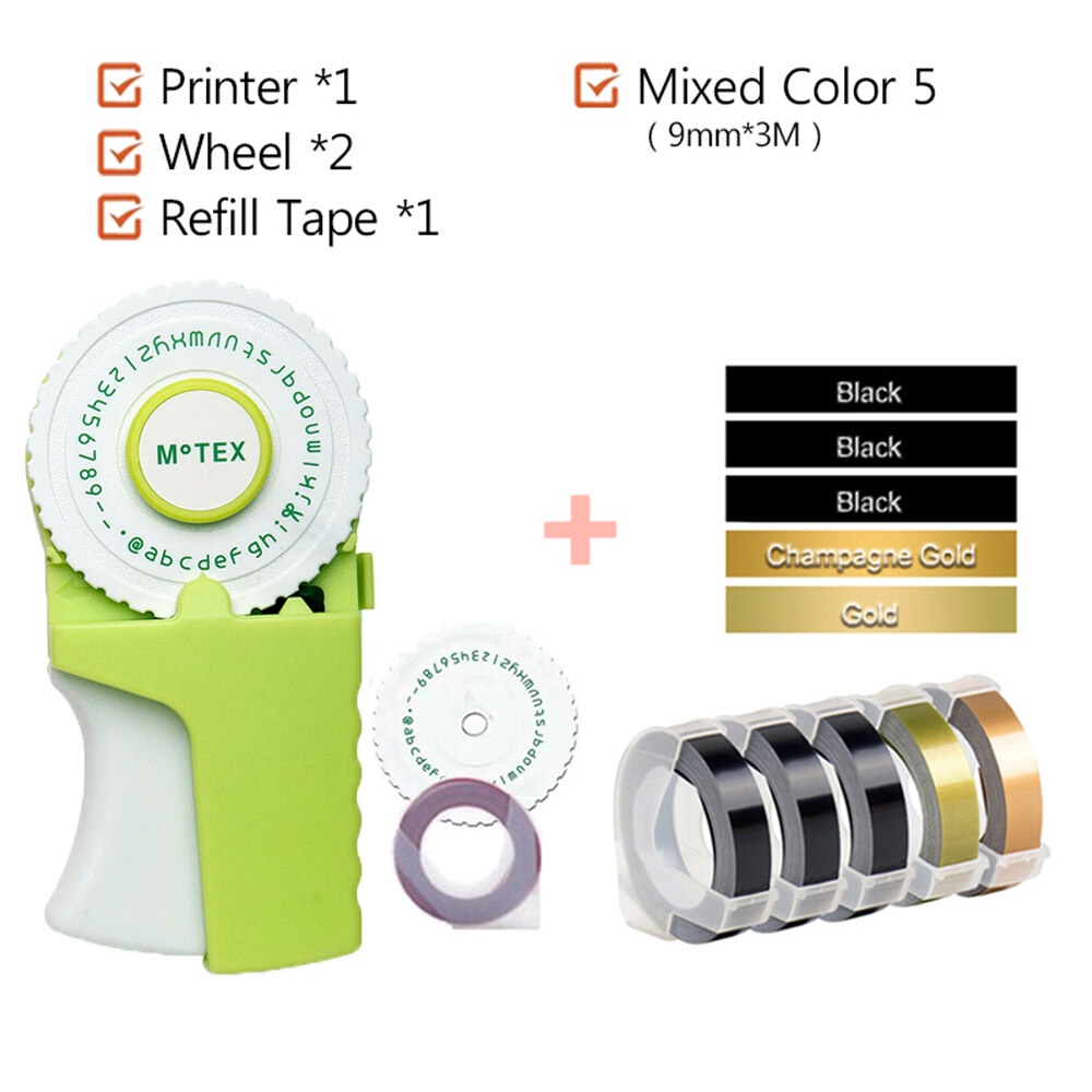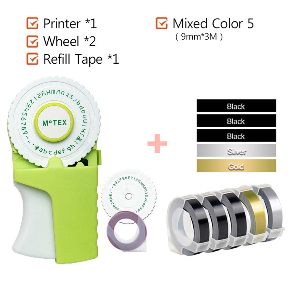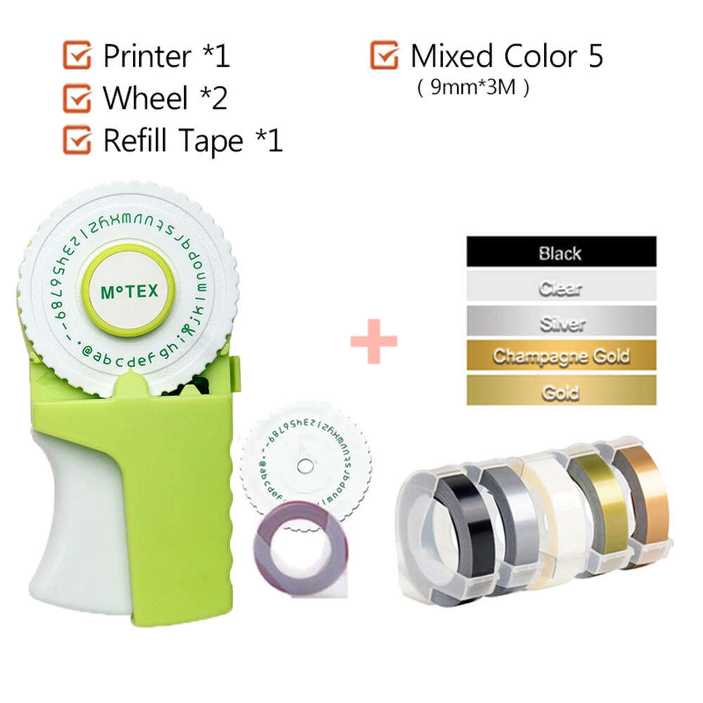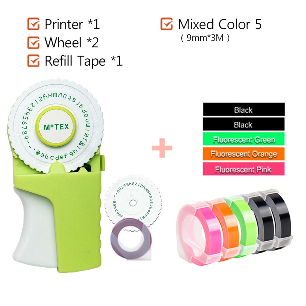 Original Motex Embossing Label Maker with 1 Wheel and 6 Tapes, Label Printer Motex E303 (Green or Pink) Made in South Korea
