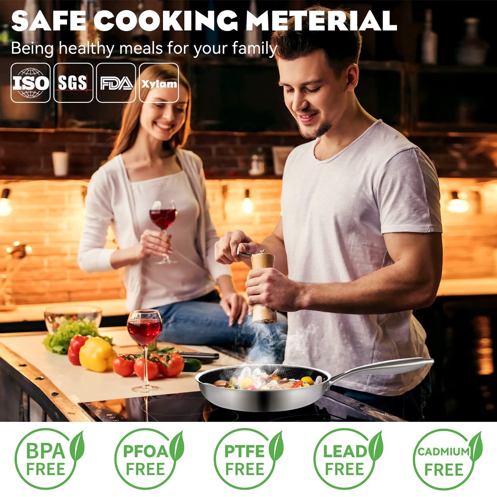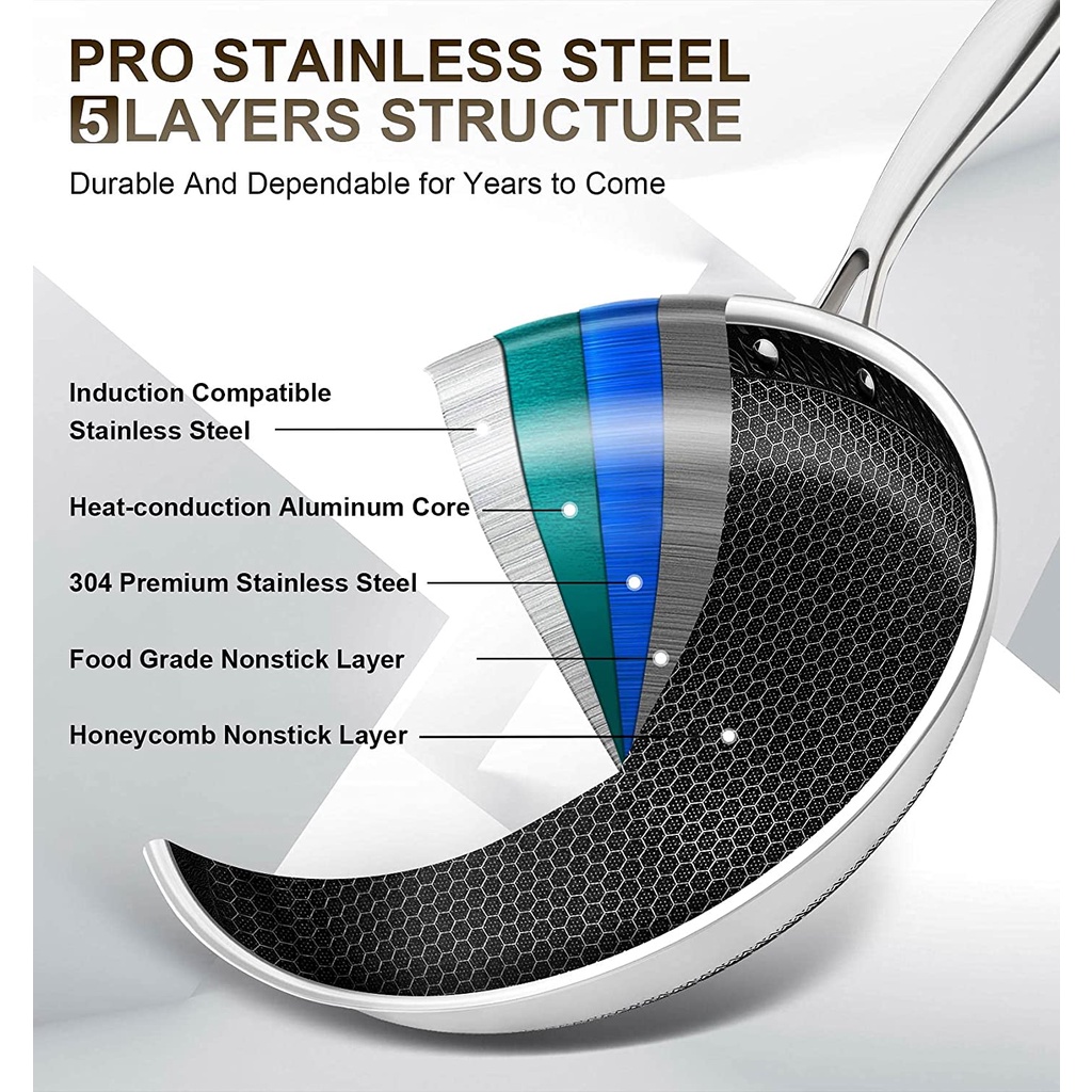 Original Non-stick Frying Pan 32cm Stainless Steel Frying Pan Honeycomb Coated 304StainlessSteelwoks