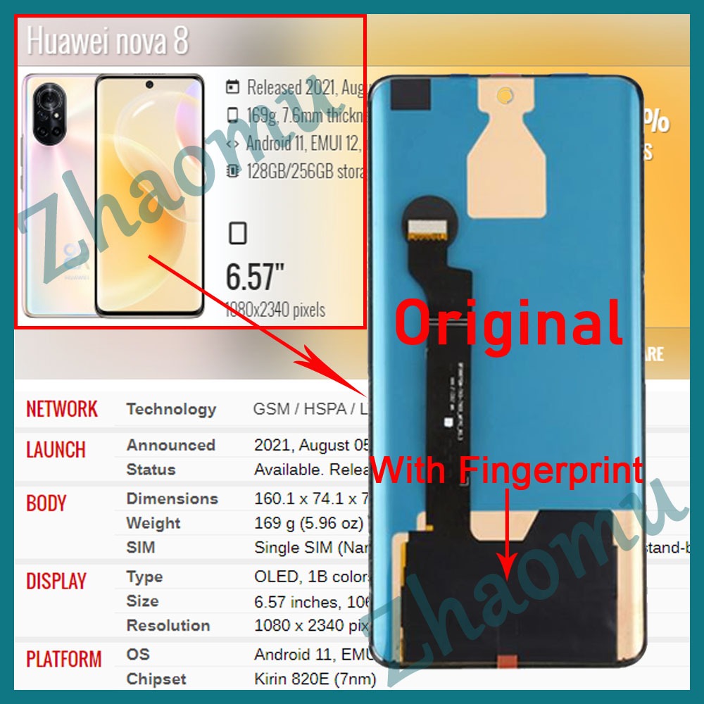 Original OLED Huawei Nova 8 Nova 8i LCD Display Touch Screen Replacement