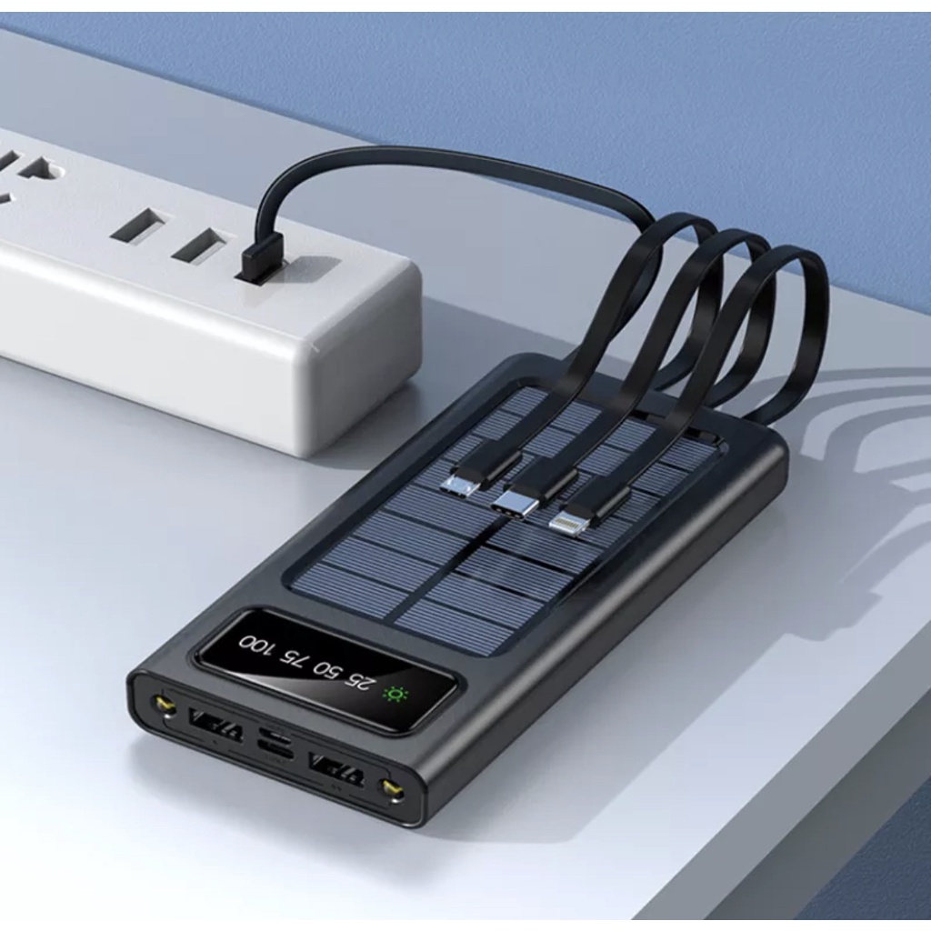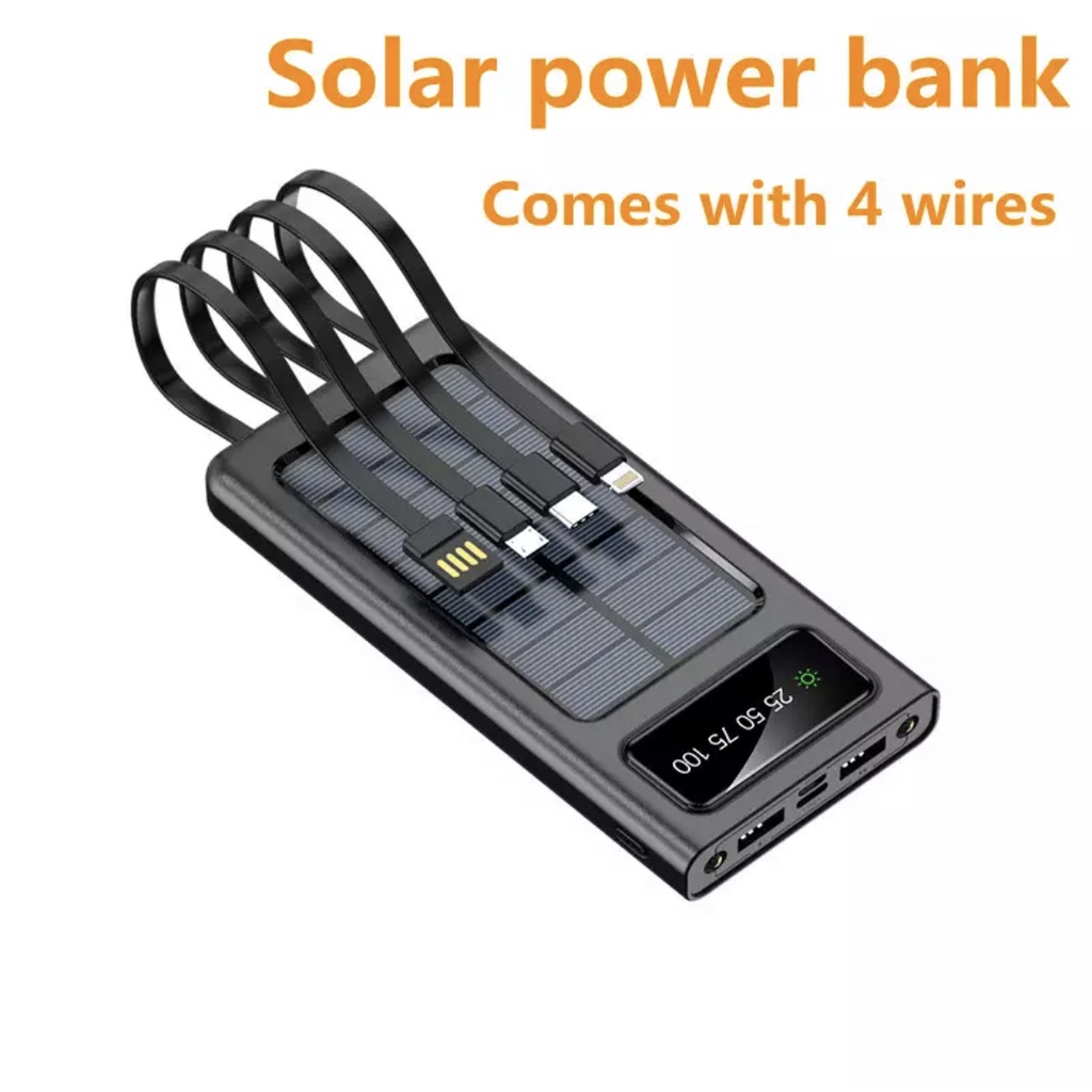 Original Realme Solar Power Bank Built Cables 20000mAh Solar Charger 2 USB Ports Powerbank with LED