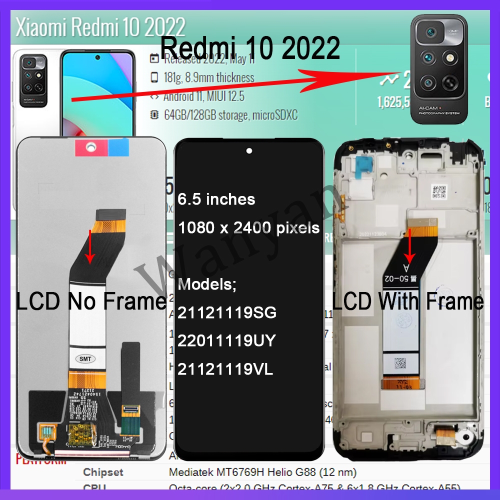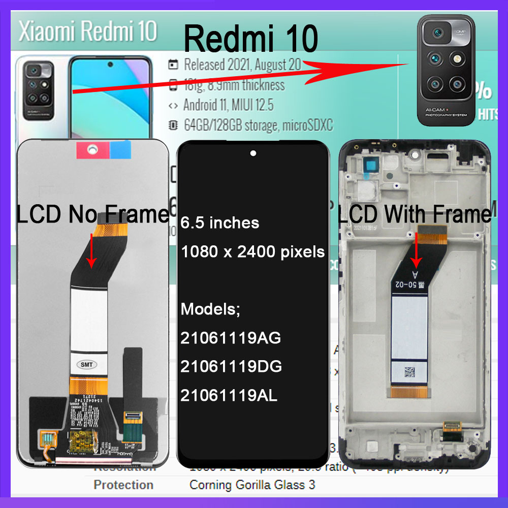 OEM For Redmi 9 9A 9C 9T 10 10 2022 10A 10C 12 12C 13C 14C LCD Display Touch Screen Digitizer With Frame Replacement